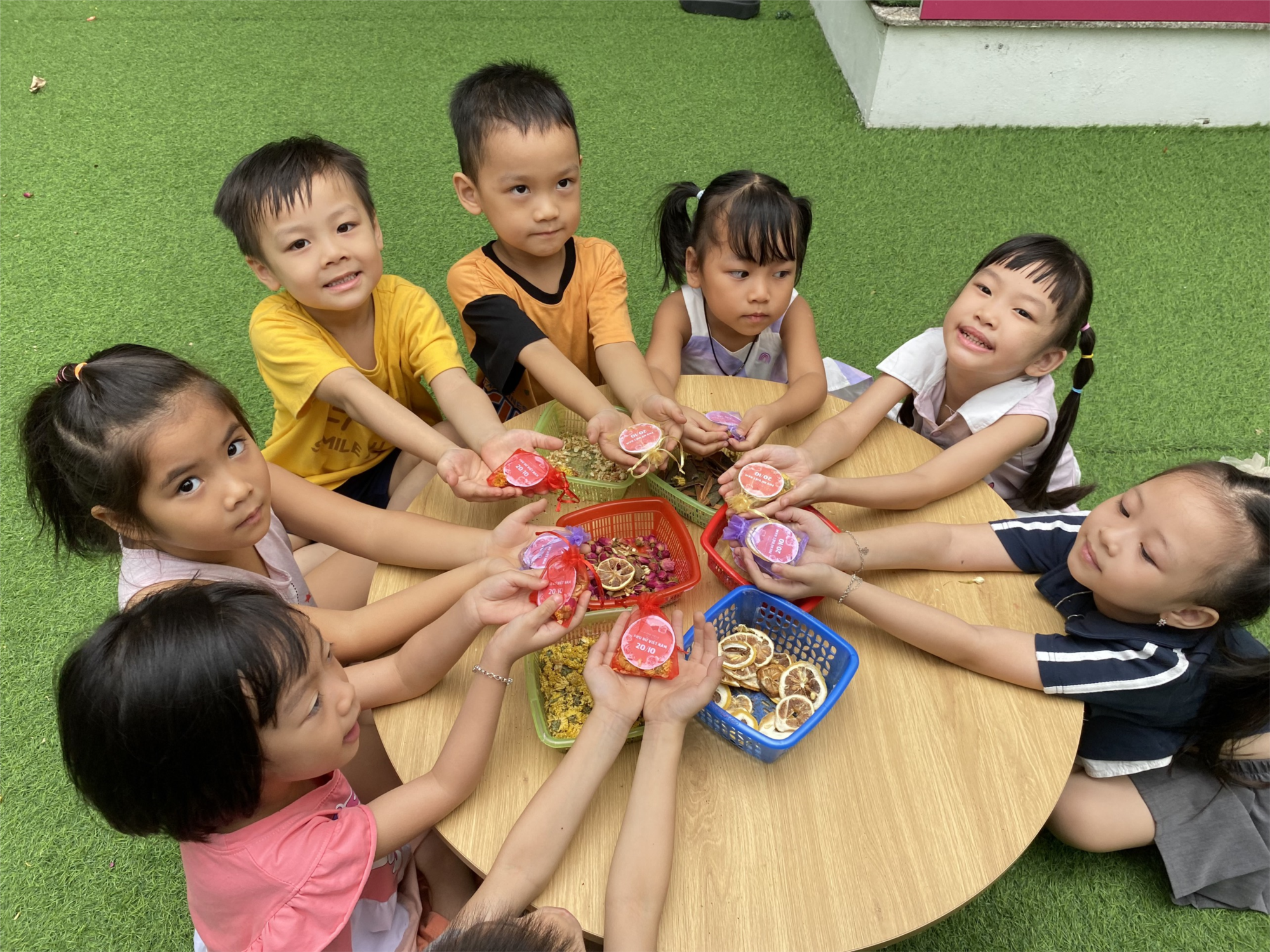 Với các nguyên liệu cô giáo đã chuẩn bị như: Hoa Hồng, hoa cúc, chanh vàng, quế các nguyên liệu được sấy khô, túi sắc màu và không thể thiếu đó là tấm thiệp với lời chúc ý nghĩa gửi đến mẹ thân yêu của các em. Các bé biết tên của các nguyên liệu và được trải nghiệm mùi thơm đặc trưng của hoa hồng, hoa cúc, hoa nhài, lát chanh vàng, quế. Các bé tự tay sắp xếp nguyên liệu sao cho đẹp mắt vào chiếc túi và buộc lại mang về tặng mẹ cùng với lời chúc thật ý nghĩa.