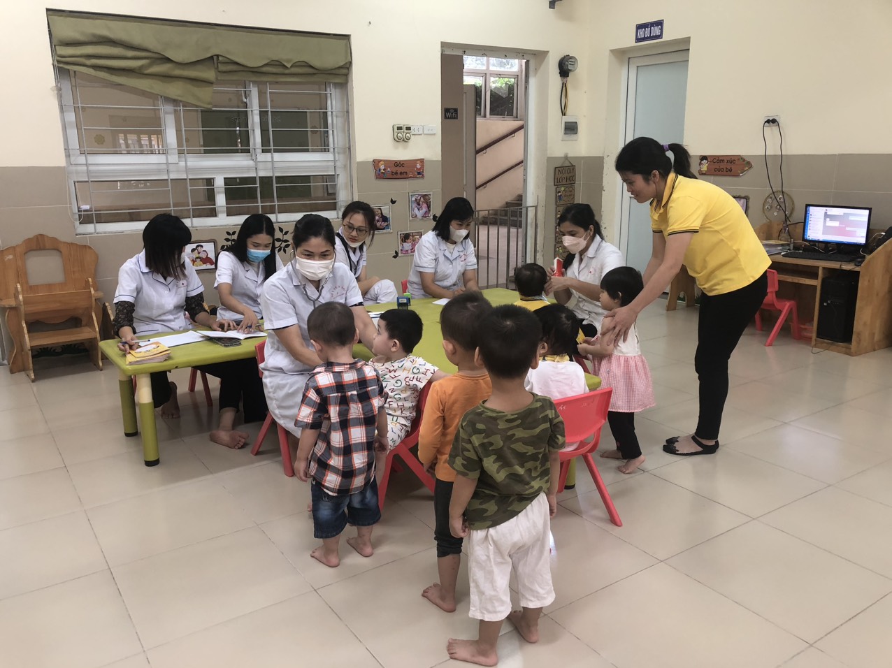 Sau đây là một số hình ảnh khám sức khỏe của các bạn lớp nhà trẻ D3: