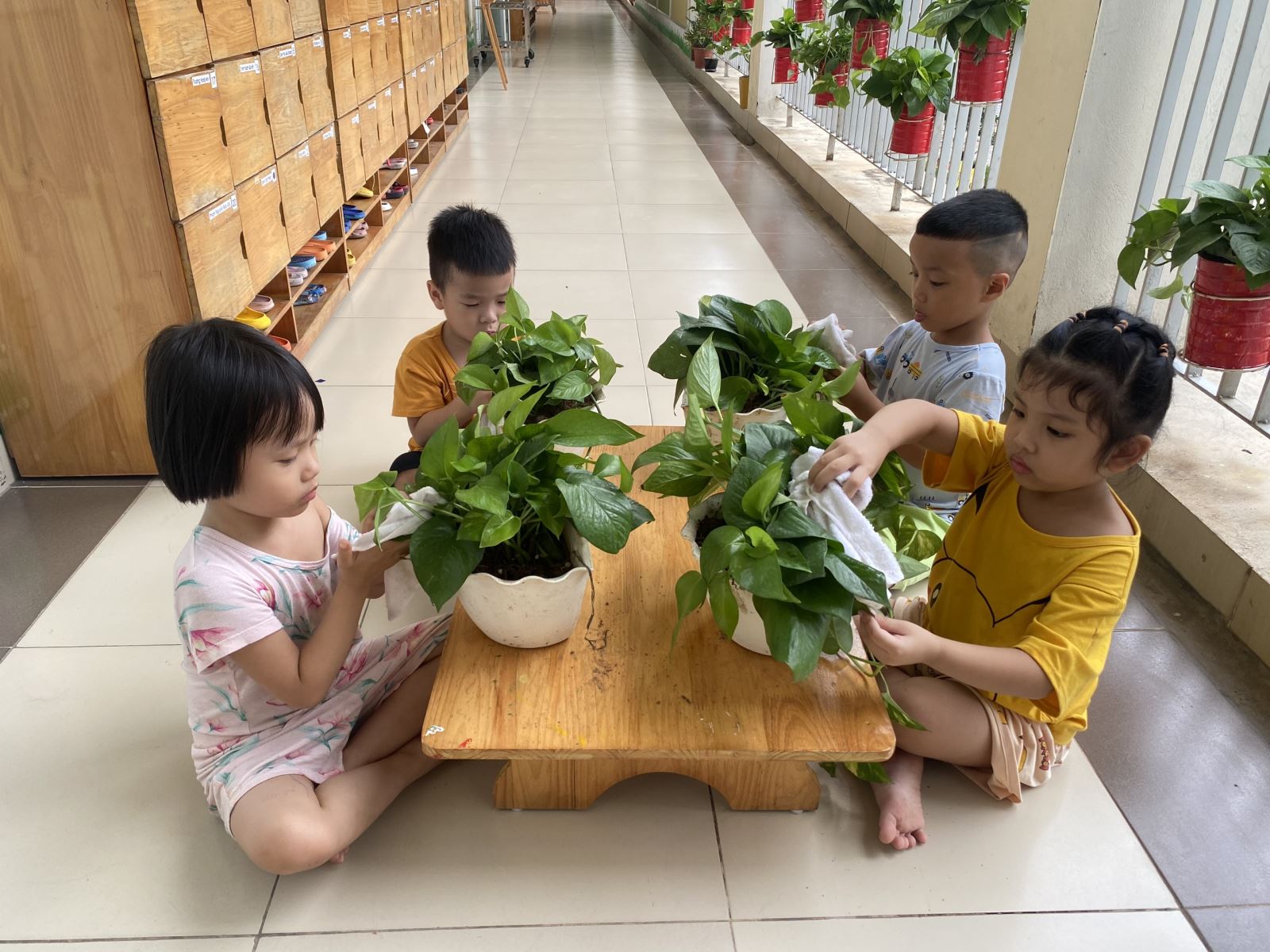 Khi chăm sóc cây xanh giúp trẻ hiểu được tầm quan trọng của thiên nhiên, biết bảo vệ môi trường. Thiên nhiên làm cho trẻ thích thú, kích thích trí tò mò của trẻ, quan tâm đến mọi việc xung quanh, nó còn giúp phát triển năng lực quan sát, trí thông minh và vốn sống thực tế của trẻ. Việc trồng và chăm sóc cây xanh trong nhà giúp trẻ đóng góp một phần công sức của mình trong việc bảo vệ môi trường, trở thành “anh hùng nhí” bảo vệ hành tinh này. Sau đây là một số hình ảnh minh họa: