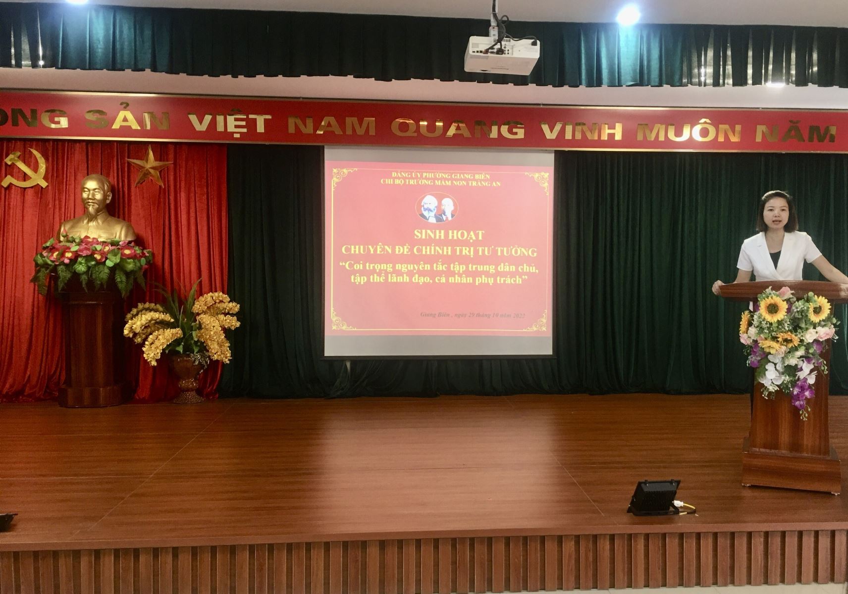Chiều ngày 29/10/2022 chi bộ trường MN Tràng An đã tổ chức sinh hoạt chuyên đề chính trị tư tưởng