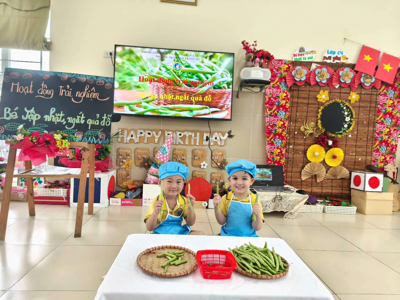 Được cùng nhau thực hành trải nghiệm " Bẻ đỗ " là một hoạt động mà các Bạn nhỏ lớp MGBC4 vô cùng hứng thú . Những đôi bàn tay nhỏ xinh cùng với sự cố gắng của các bạn nhỏ sau khi được quan sát Cô giáo dạy các bé cách cầm quả đỗ và cách bẻ quả đỗ thành nhiều đoạn nhỏ .Những gương mặt hân hoan ,hào hứng khi thực hiện thao tác cầm và bẻ quả đỗ với những trao đổi của các bạn : cầm khéo và bẻ khéo .Qua hoạt động các bạn nhỏ được trải nghiệm nhằm phát triển kỹ năng khéo léo rèn tính kiên trì biết làm công việc vừa sức .Từ đó trẻ hiểu được giá trị dinh dưỡng của các loại rau củ quả.Giáo dục trẻ biết trân trọng sản phẩm mà các bác nông dân làm ra.Dưới đây là 1 số hình ảnh của buổi trải nghiệm .