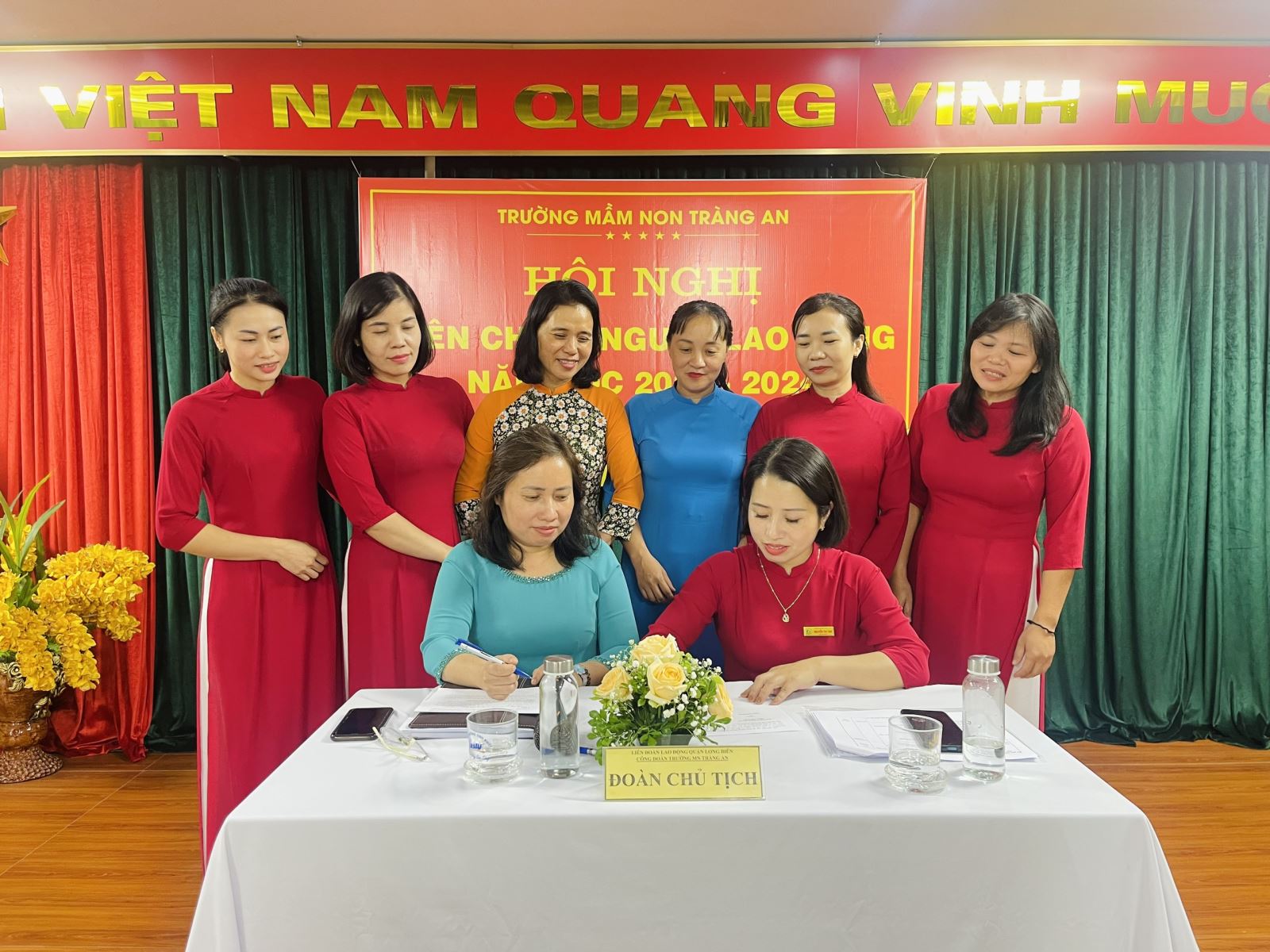 Đ/c thư ký thông qua Nghị quyết toàn thể CBGVNV nhất trí, Hội nghị cán bộ, công chức, viên chức trường Mầm non Tràng An năm học 2023 - 2024 đã diễn ra thành công tốt đẹp.