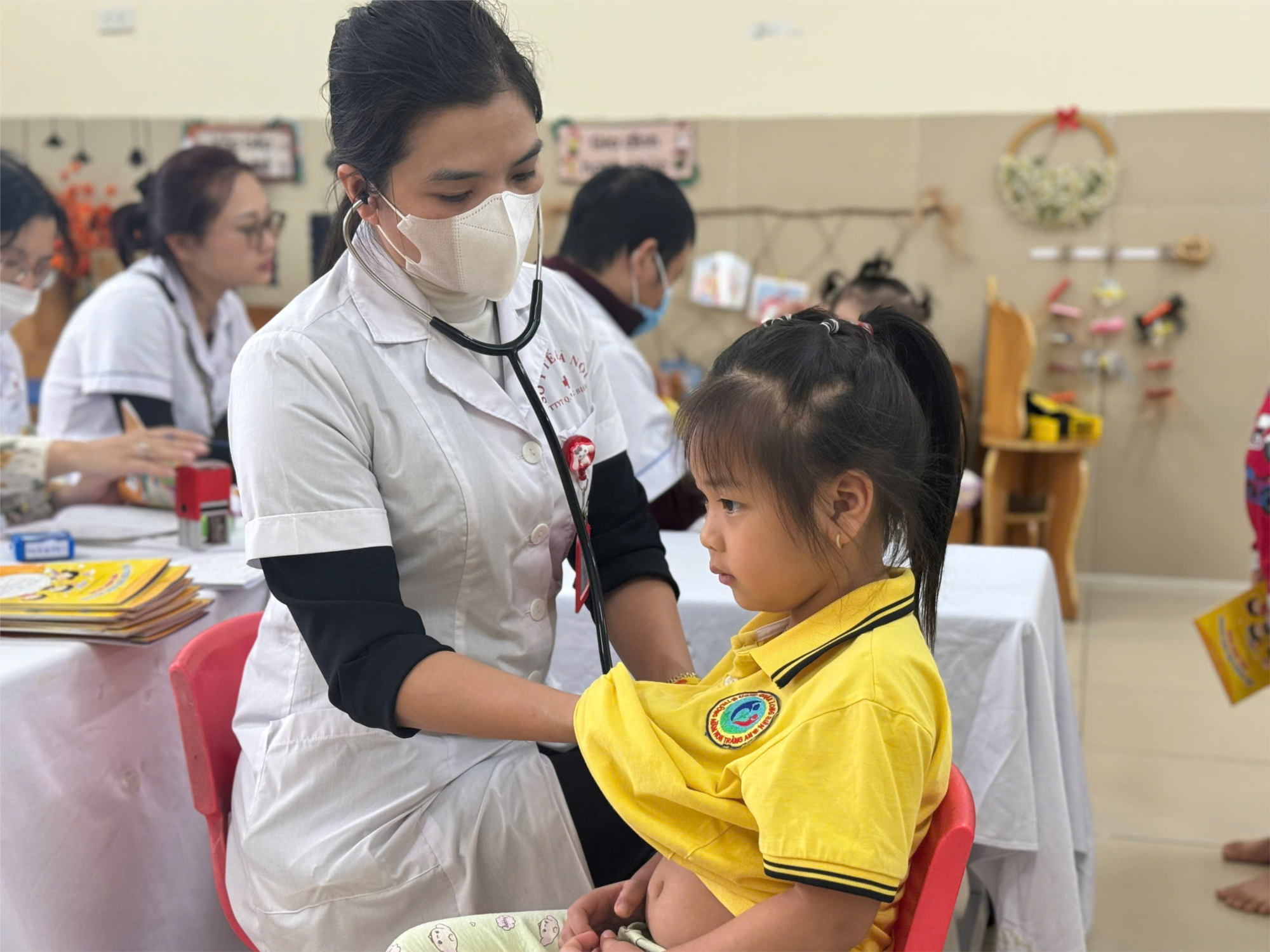 Dưới đây là một số hình ảnh khám sức khỏe định kì tại trường mầm non Tràng An :