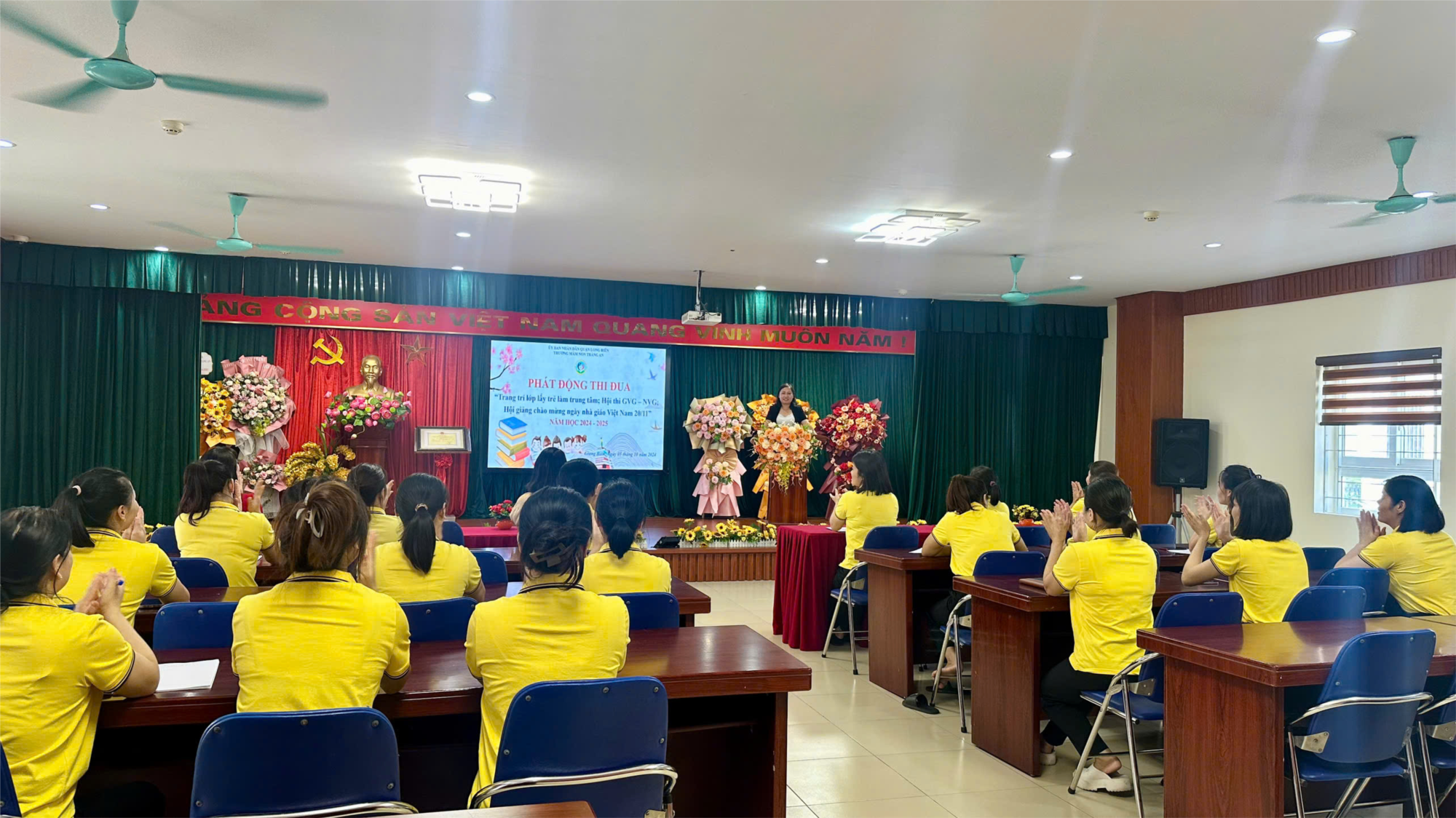 Ngày 01/10/2024, trường mầm non Tràng An tổ chức phát động “Hưởng ứng tuần lễ học tập suốt đời”. Với chủ đề “Phát triển văn hóa đọc thúc đẩy học tập suốt đời”, trường mầm non Tràng An đã tổ chức rất nhiều hoạt động thiết thực “Hưởng ứng tuần lễ học tập suốt đời” năm 2024. Với quyết tâm thực hiện phong trào “Học tập suốt đời” của tập thể cán bộ, giáo viên, nhân viên nhà trường đã được đồng chí Đặng Thị Hường – BTCB – Hiệu trưởng nhà trường khẳng định “Học tập không bao giờ kết thúc. Nó là một hành trình vĩnh viễn, và tuần lễ học tập suốt đời chỉ là một bước khởi đầu trong hành trình đó”.