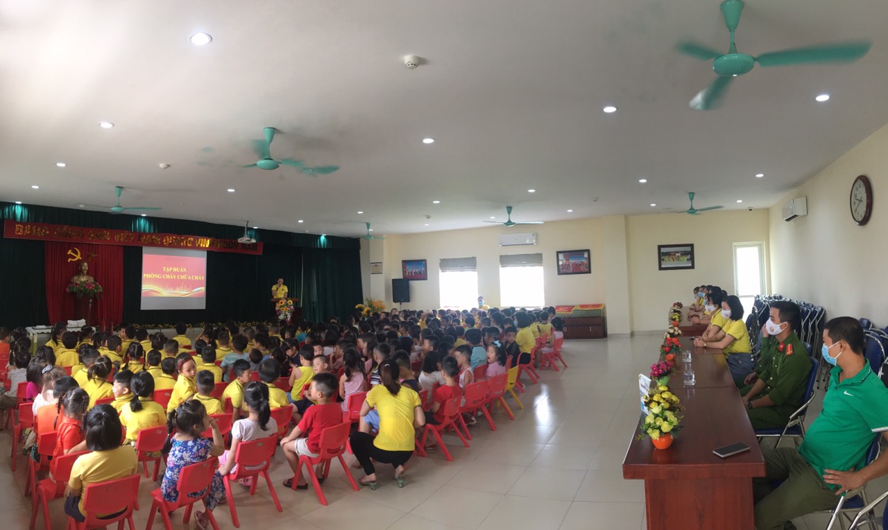 CBGVNV và học sinh trường MN tràng An đã được đồng chí Nguyễn Hoài Anh giảng viên báo cáo của buổi tập huấn cung cấp kiến thức về các nguyên nhân gây ra cháy nổ, cách phòng, xử lý khi xảy ra hỏa hoạn.