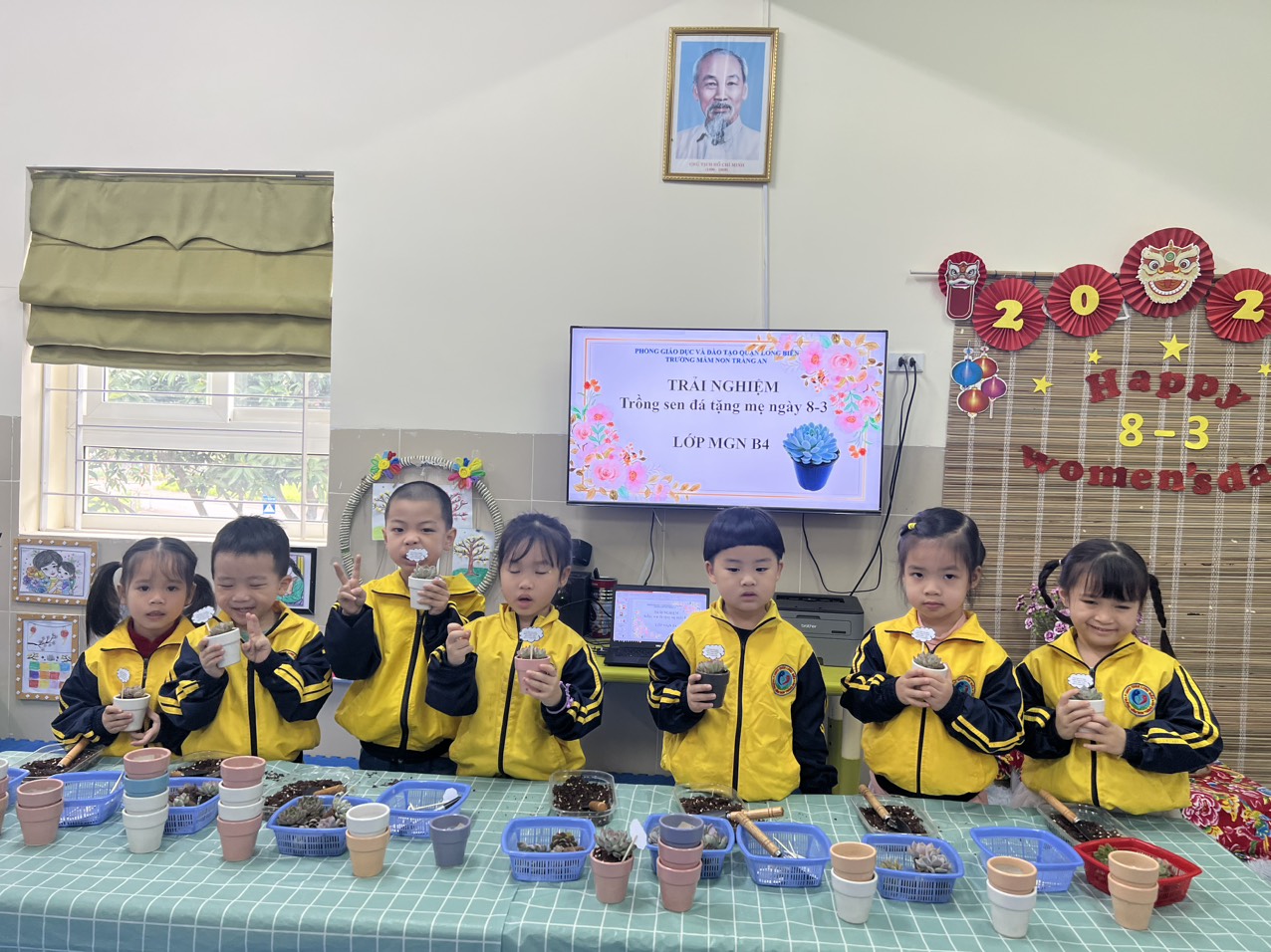 💐💐💐Bằng đôi bàn tay khéo léo, các con học sinh đã trồng những chậu sen đá xinh xắn để gửi tặng bà, tặng mẹ.
