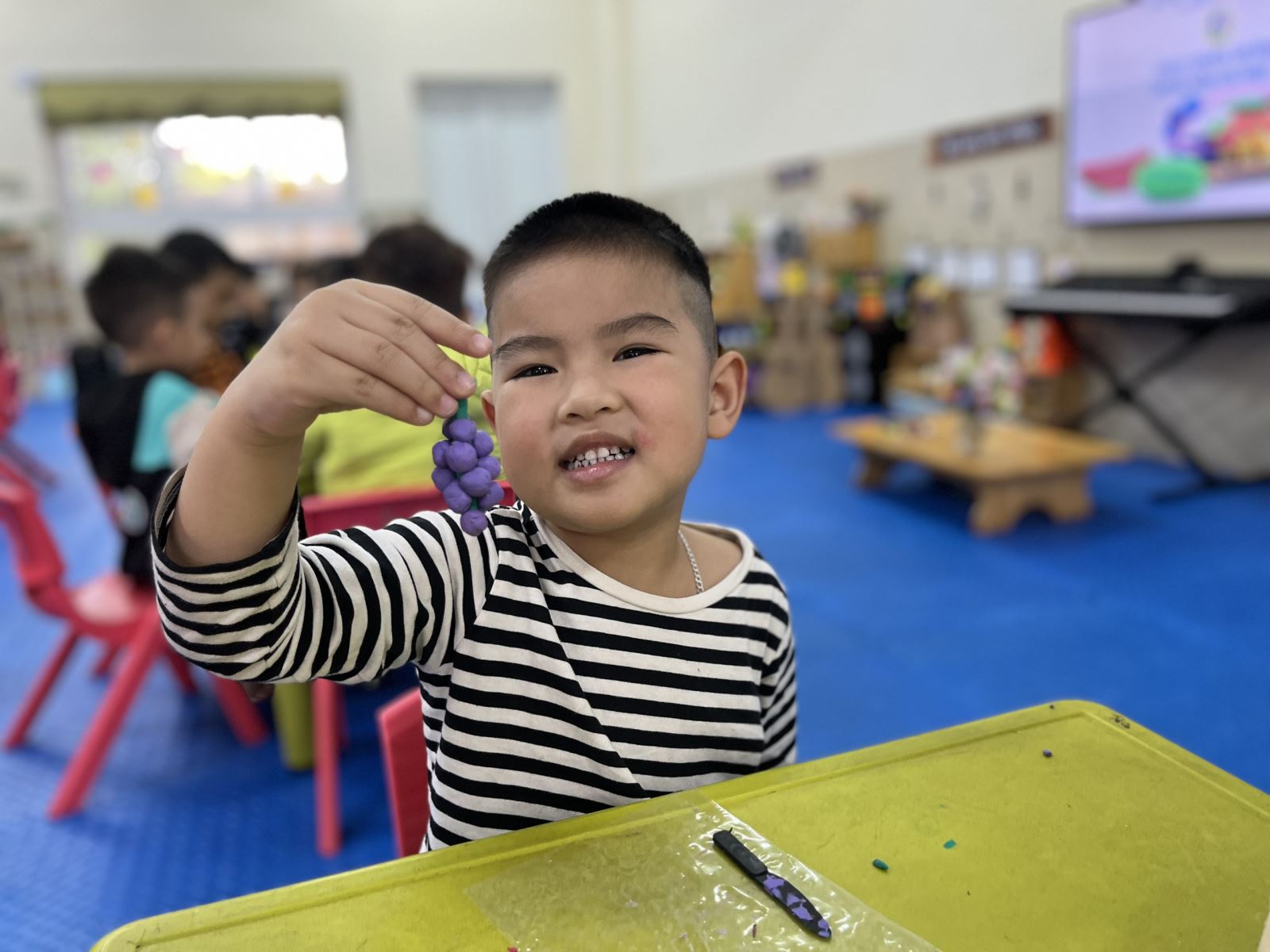Hoạt động tạo hình phát triển ở trẻ khả năng sáng tạo, thẩm mỹ. Ở giờ hoạt động "Nặn các loại quả" các con được rèn luyện những kĩ năng khéo léo của đôi bàn tay như: xoay tròn, ấn dẹt, lăn dọc, uốn cong, đính, gắn,.. Các con rất hứng thứ tích cực và tạo ra những sản phẩm đẹp. Sau đây là một số hình ảnh của trẻ