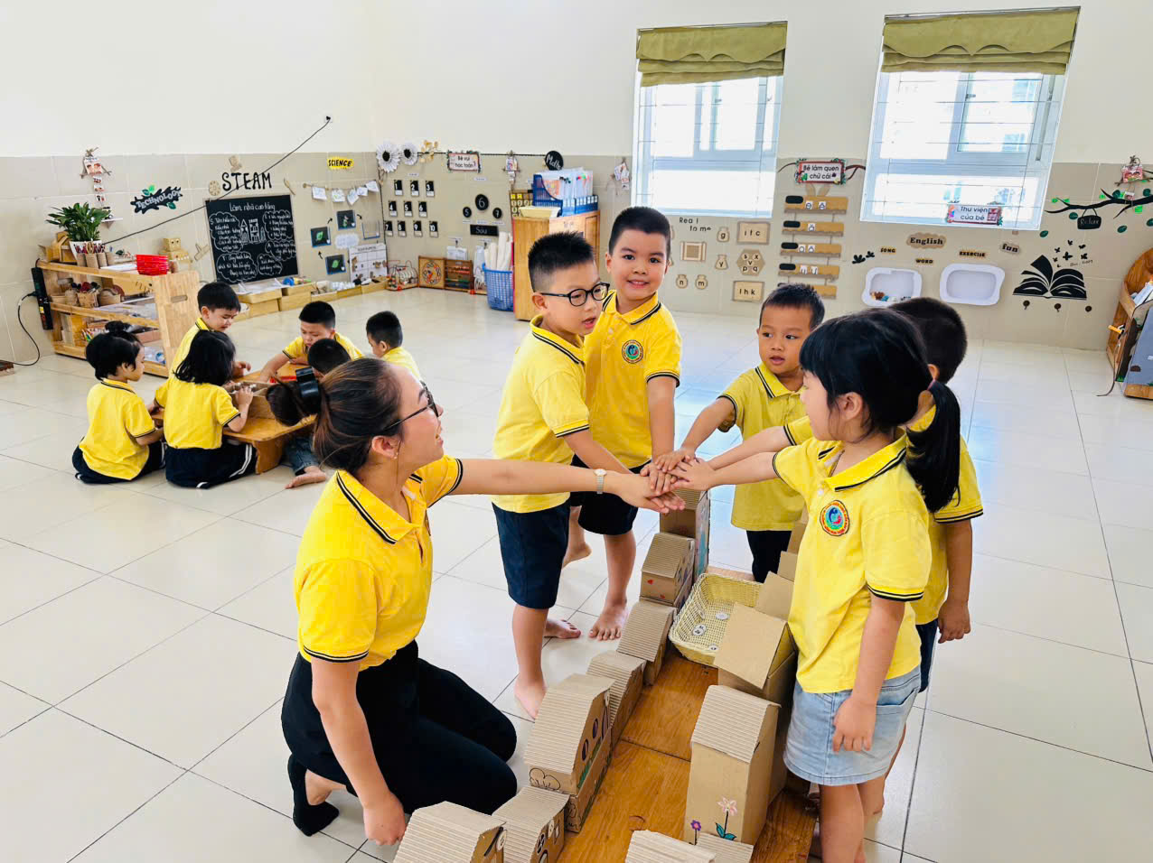 Qua tiết học trẻ đã nắm được các kiến thức cơ bản như: nhận biết các chữ số, số lượng trong phạm vi 10. Trẻ biết số chẵn là các số 2,4,6,8,10. Số lẻ 1,3,5,7,9. Trẻ nhận biết số chẵn số lẻ trong phạm vi 10 thông qua ghép đôi. Nhận ra cách sắp xếp vị trí của số chẵn, số lẻ trong dãy số tự nhiên và ứng dụng của số chẵn, số lẻ trong cuộc sống....Ngoài ra trẻ còn được tham gia vào rất nhiều trò chơi lí thú giúp củng cố lại các kiến thức mà cô đã dạy. Dưới đây là một số hình ảnh của các con trong giờ học: