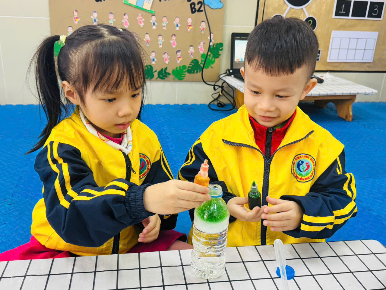 🎀Mỗi ngày đến trường với các bạn nhỏ đều là những trải nghiệm vô cùng tuyệt vời và thú vị bởi các con được vui chơi và học tập🧐 Hôm nay, các bạn nhỏ lớp MGN B2 được các cô hướng dẫn thí nghiệm “Chai nước sắc màu” 😋🤓