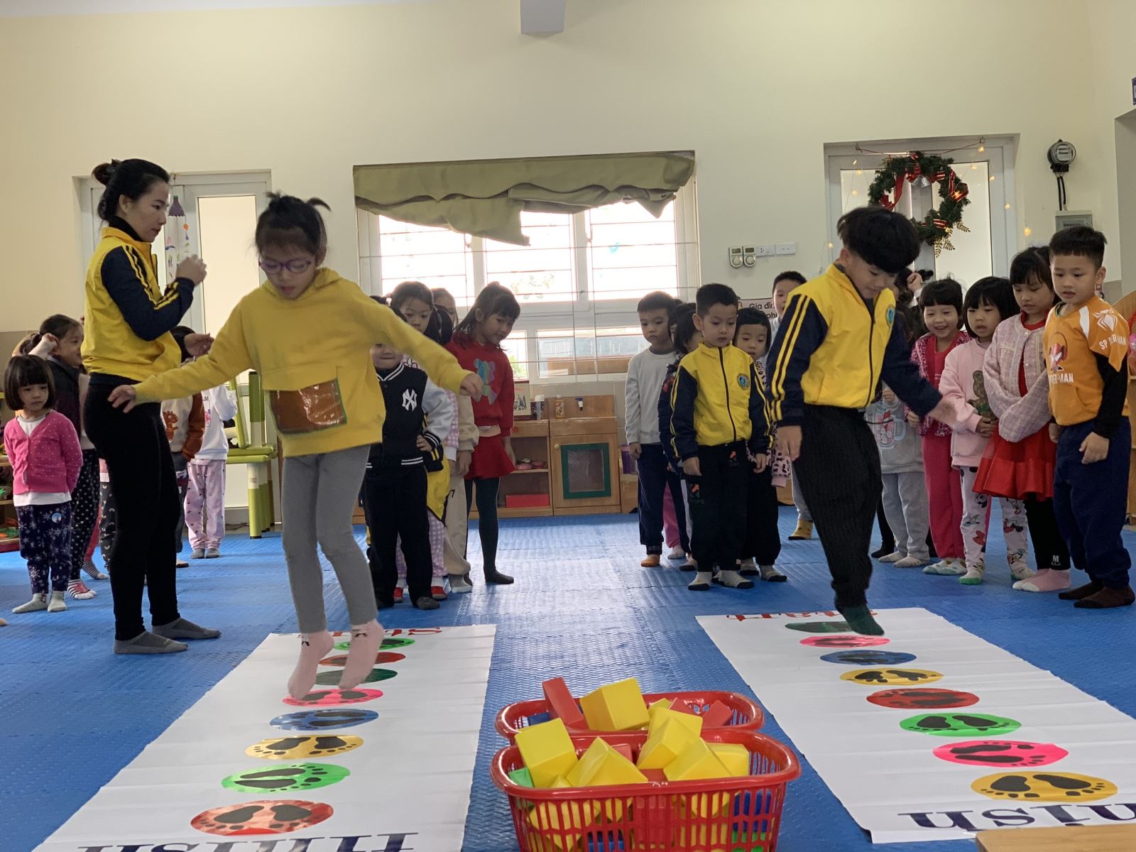Với lứa tuổi mẫu giáo lớn, những giờ học làm quen với toán càng quan trọng, bước đầu cung cấp những kiến thức cơ bản cho trẻ trước khi vào trường tiểu học. Các bạn lớp Mẫu giáo lớn A4 rất háo hức tham gia vào tiết học "Đề tài: Nhận biết, phân biệt khối vuông, khối chữ nhật". Thông qua các hoạt động học, các trò chơi hay làm bài tập củng cố, trẻ đã nắm vững các khái niệm đơn giản về hình dạng, mặt bao, so sánh điểm giống và khác nhau của 2 khối.