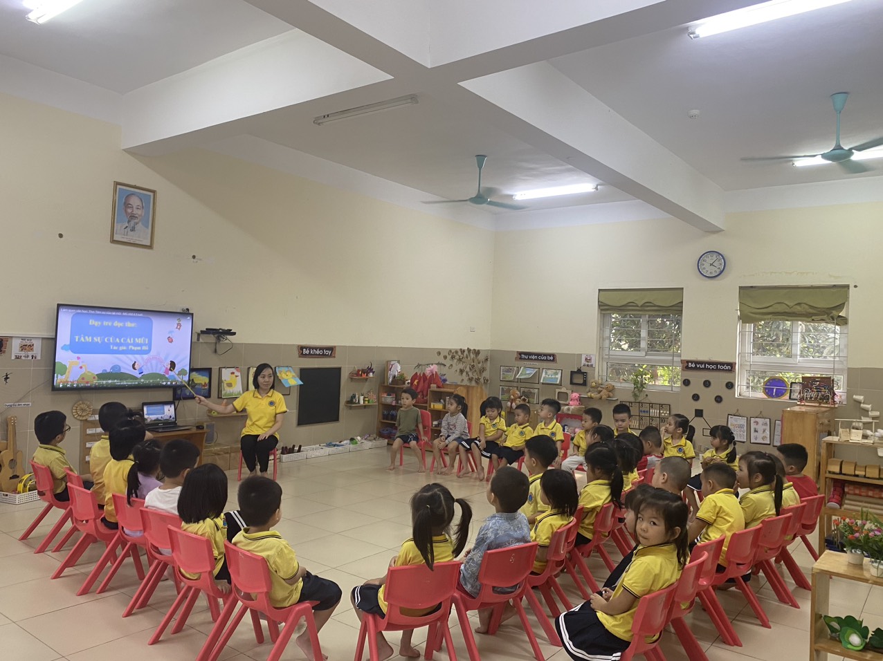 Hôm nay các bé lớp MGN B3 được các cô giáo hướng dẫn các con đọc diễn cảm bài thơ " Tâm sự của cái mũi" qua bài thơ các cô còn giáo dục trẻ biết bảo vệ, vệ sinh mũi và các bộ phận trên cơ thể luôn sạch sẽ để cơ thể luôn khỏe mạnh.