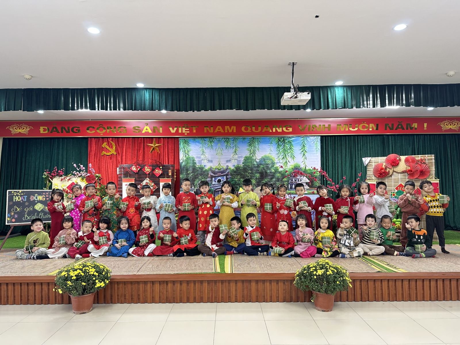 Hoà trong không khí hân hoan chào mừng xuân Giáp Thìn 2024. Cô và trò lớp MGL A1 đã cùng nhau tham gia hoạt động trải nghiệm gói bánh chưng ngày tết. Các con được tìm hiểu các nguyên liệu gói bánh, những chiếc lá dong được rửa sạch sẽ, lau khô, những nguyên liệu cần thiết gồm: gạo nếp, lá dong, đỗ xanh và thịt lợn, quy trình gói bánh chưng... Thông qua hoạt động giúp cho các bé hiểu hơn về phong tục, giáo dục nét đẹp văn hoá truyền thống của dân tộc Việt Nam, trẻ hiểu sâu sắc về ý nghĩa bánh chưng ngày tết và được cùng tham gia gói bánh cùng cô.