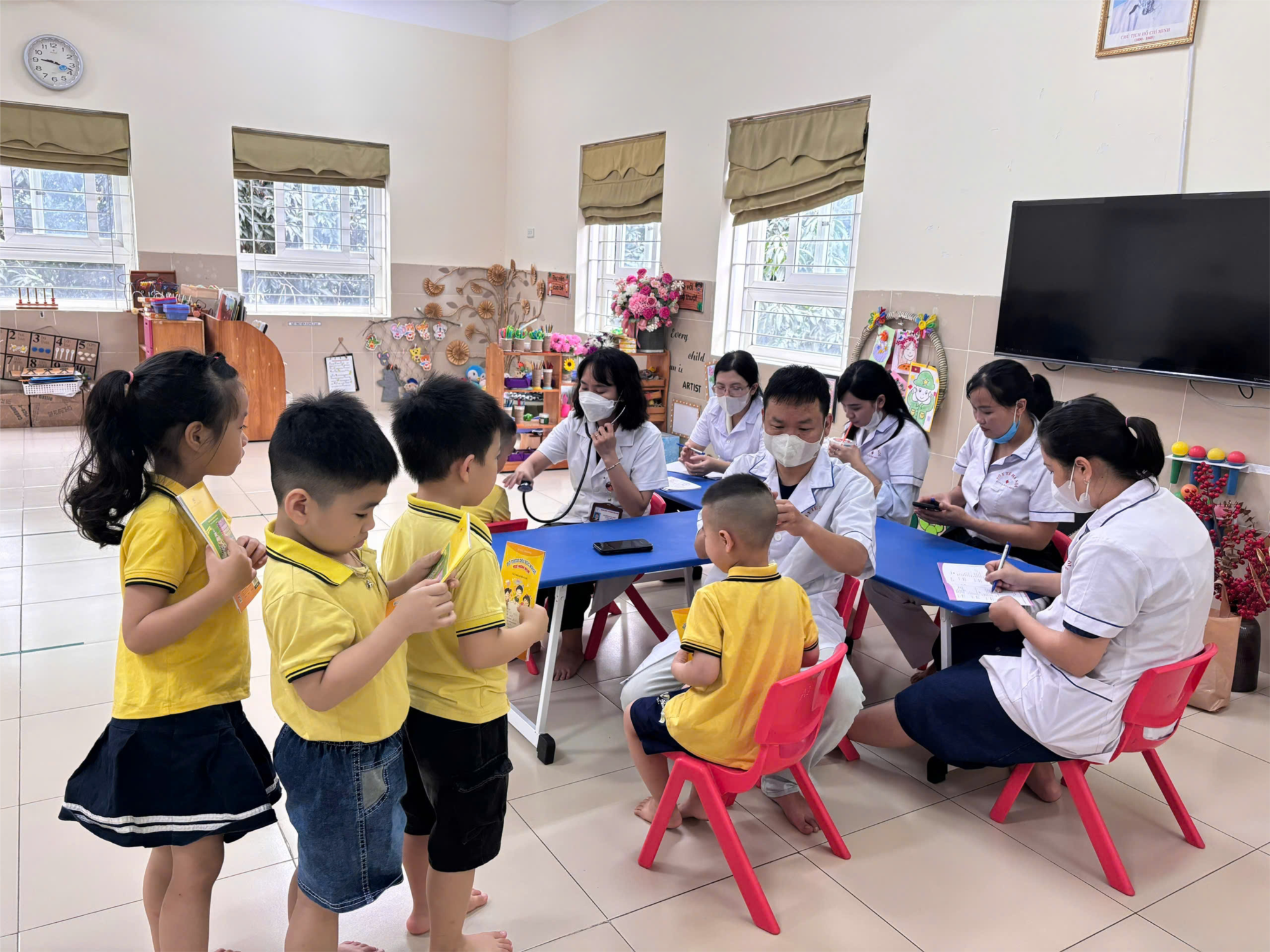 🩺 Kết quả kiểm tra sức khoẻ của trẻ được cán bộ y tế phường ghi chép cụ thể trong sổ theo dõi sức khỏe, chấm biểu đồ phân loại sức khỏe trẻ và được giáo viên các lớp thông báo đến phụ huynh, đặc biệt là một số trẻ mắc bệnh qua đó phụ huynh cùng phối hợp có biện pháp điều trị kịp thời cho trẻ.