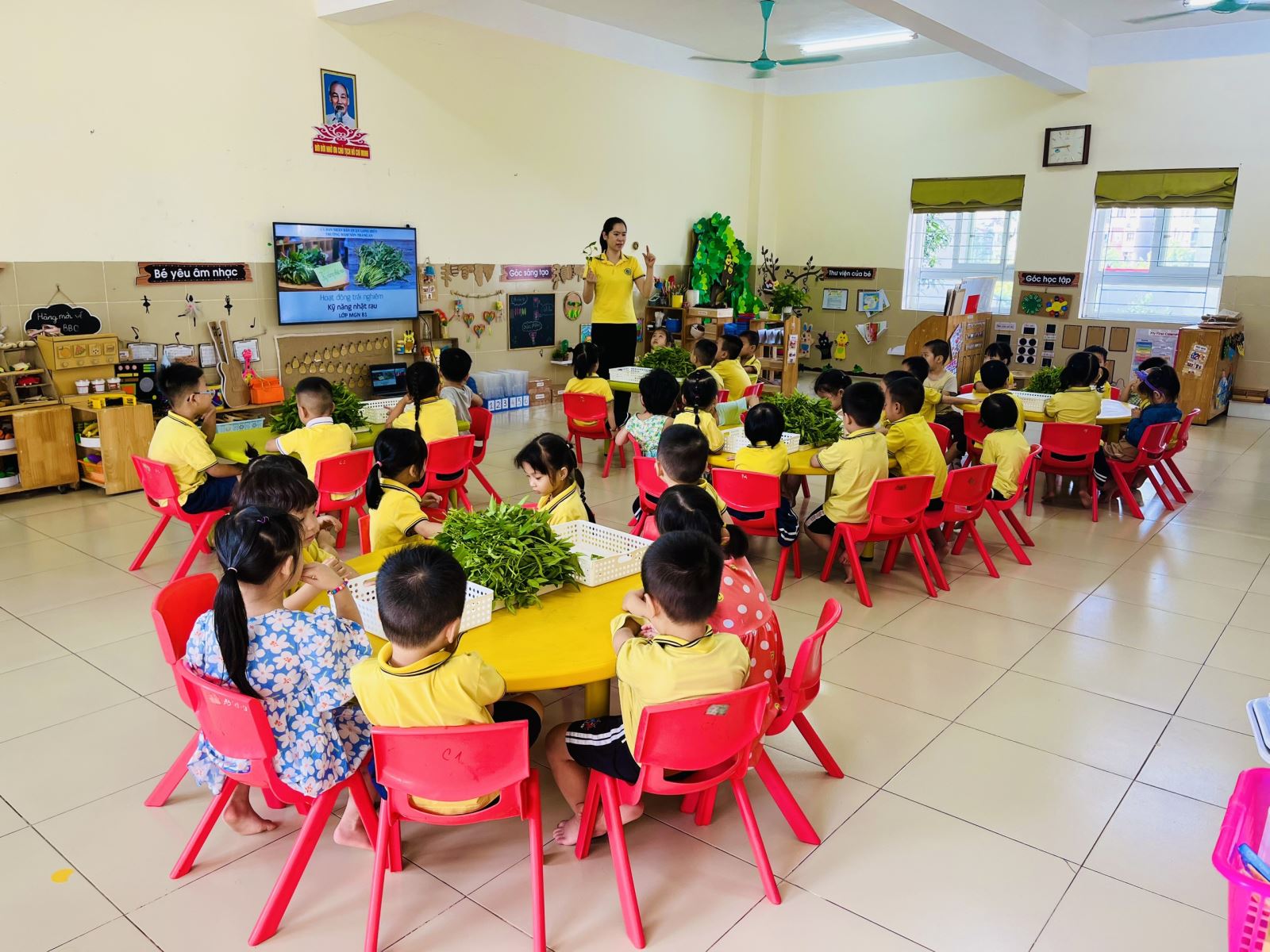 Qua hoạt động trẻ nhận biết được tên gọi, đặc điểm, tác dụng của rau muống đối với sức khỏe con người. Không những thế các bạn nhỏ còn được thực hành về cách nhặt rau như thế nào?
