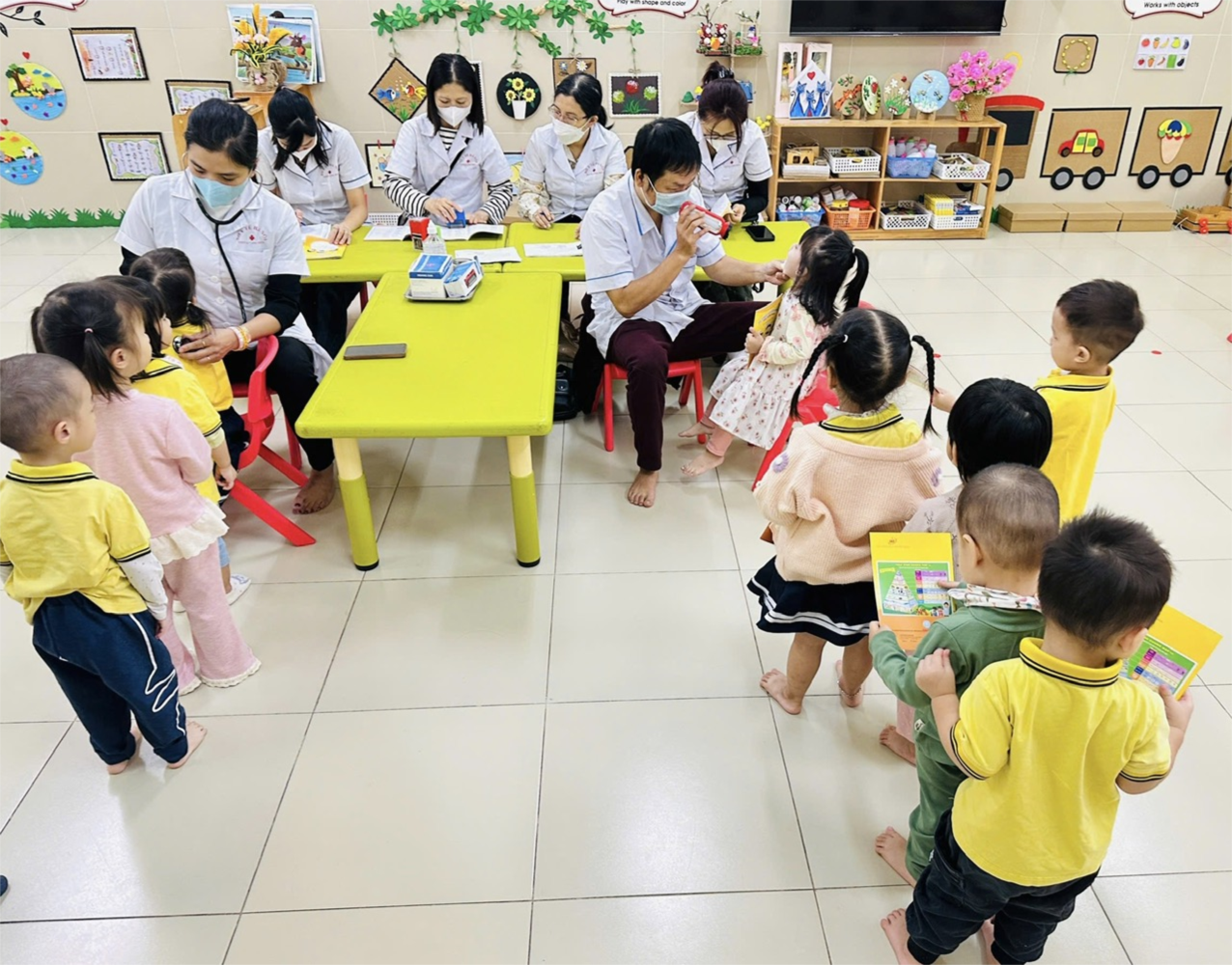 Trong các hoạt động của nhà trường, công tác chăm sóc sức khoẻ cho trẻ là một việc làm luôn được nhà trường đặc biệt quan tâm. Từ nhiều năm nay, việc tổ chức khám sức khoẻ định kỳ cho trẻ đã được nhà trường duy trì thành nề nếp thực hiện thường xuyên theo kế hoạch trong năm học.