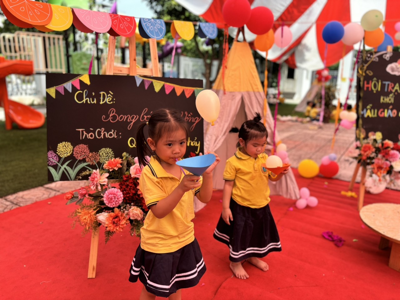 Sau thời gian đầy ắp niềm vui và tiếng cười Hội " Trại Hè 2024 "Đã khép lại .Tại hội Trại Hè các con đã được trải nghiệm trò chơi " "Bong Bóng Cầu Vồng ". Các bé thỏa sức vui chơi với loại bong bóng có kích thước khác nhau, đa dạng về chất liệu và màu sắc sặc sỡ của chiếc cầu vồng .Trò chơi mang đến cho trẻ những kí ức khó quên trong suốt mùa hè .