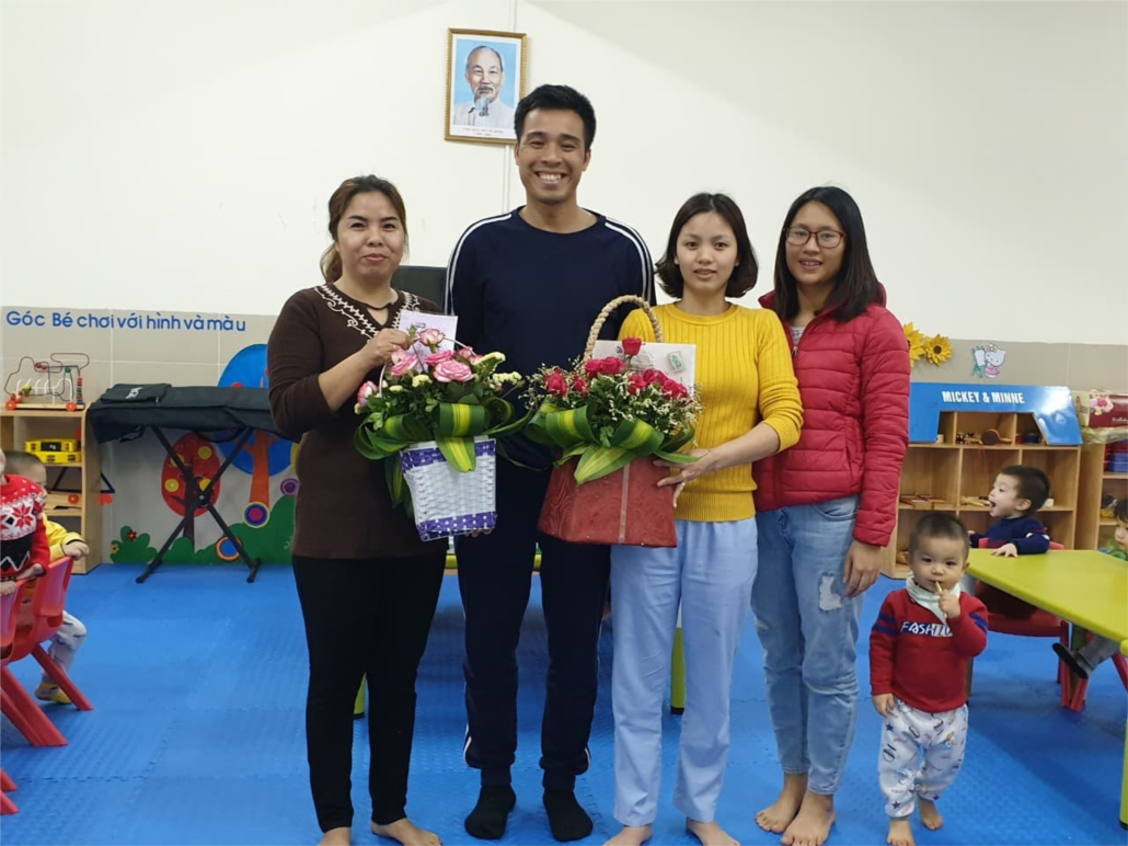 Hòa chung không khí chào mừng ngày 8-3. Cô và trò lớp D1 đã cùng nhau làm bưu thiếp để chúc mừng các bà, mẹ cô…..nhân ngày 8-3. Các con được tự tay làm ra những bưu thiếp rất ngộ nghĩnh, đáng yêu là những tình cảm yêu thương mà các con giành tặng cho bà, mẹ và cô giáo. Không chỉ có vậy, các con còn được liên hoan cùng các cô, các mẹ nhân ngày 8-3.