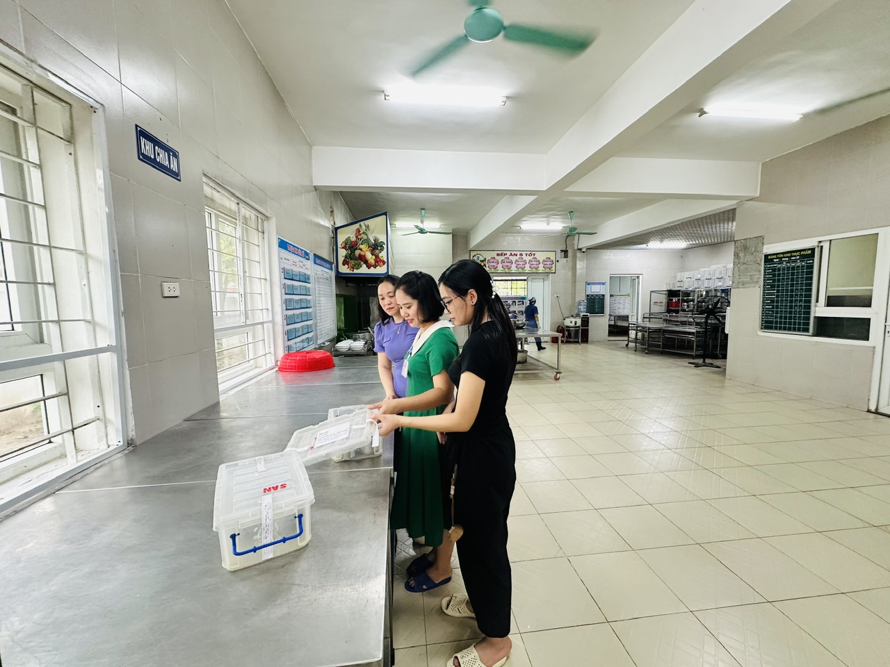 - Kiểm tra công tác đảm bảo vệ sinh an toàn thực phẩm tại bếp ăn: Kiểm tra việc lưu nghiệm thức ăn, quy trình sơ chế biến món ăn, cập nhật sổ ba bước, kho bảo quản thực phẩm, hồ sơ thực phẩm, hồ sơ nuôi dưỡng, công tác tự giám sát bếp ăn tập thể của trường