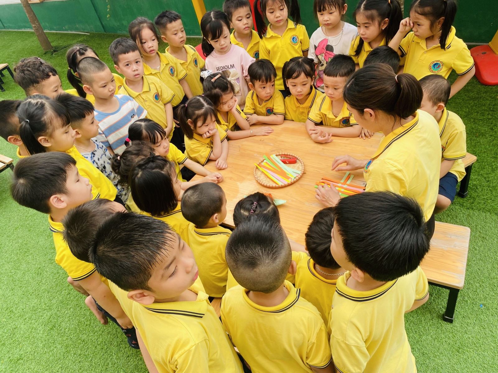 Đan nong mốt, một hoạt động đơn giản thôi nhưng đòi hỏi trẻ phải tập trung cao và sử dụng đôi bàn tay thật khéo léo. Từng ngón tay nhỏ xinh khéo léo của các bé nhấc từng nan, từng nan để đan, sắp xếp giữa các nan ngang và nan dọc. Hoạt động này còn giúp trẻ có kiến thức về sắp xếp xen kẽ, số chẵn - số lẻ, về phối màu...