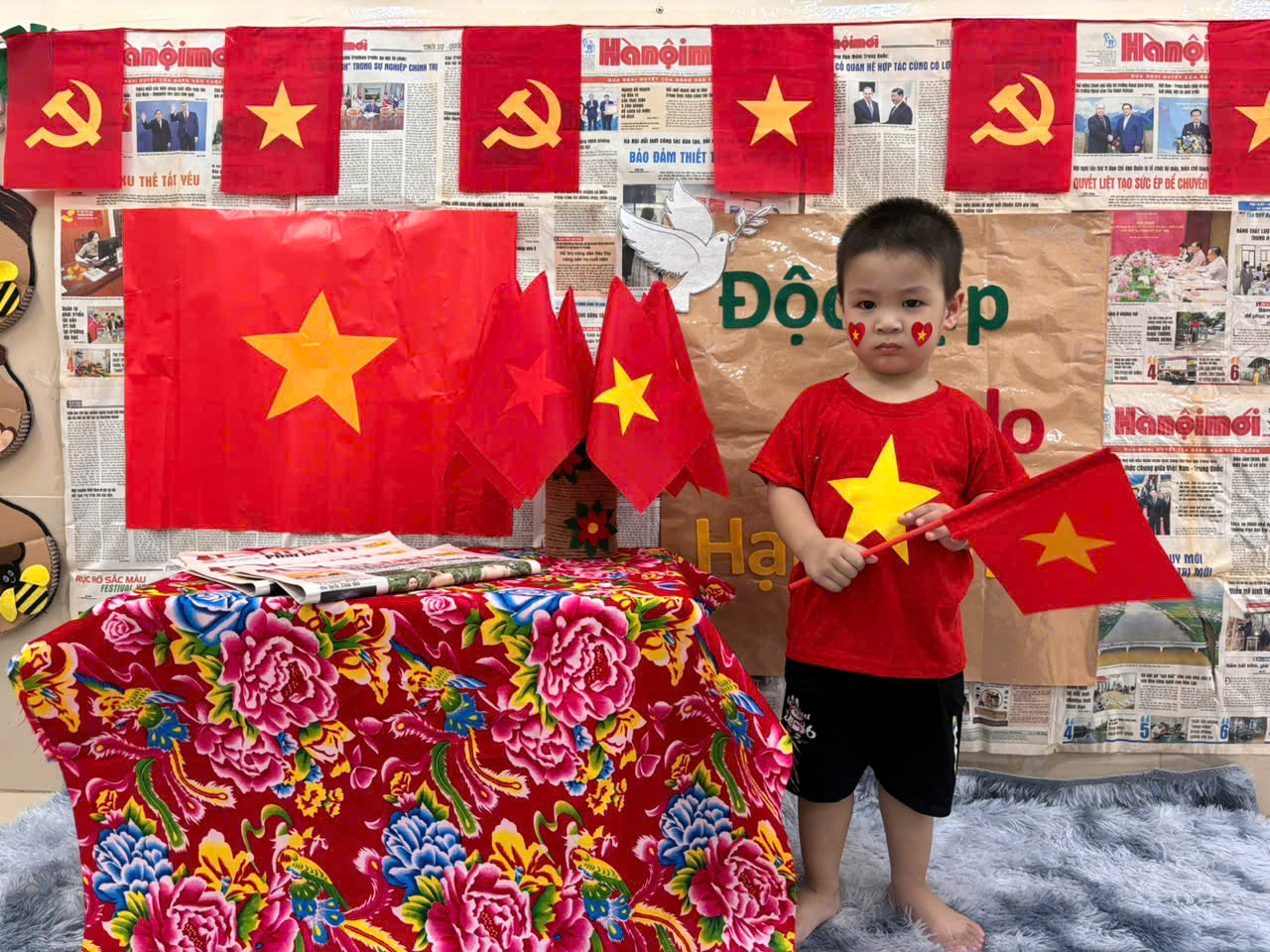 Các con lớp Nhà trẻ D3 đã cùng nhau khoác lên mình sắc đỏ rực rỡ của Tổ quốc, giương cao lá cờ sao vàng năm cánh, nụ cười hồn nhiên trong trẻo càng làm cho không khí thêm rộn ràng. Đây không chỉ là hoạt động chụp ảnh lưu giữ kỷ niệm, mà còn là cách gieo vào lòng các con tình yêu đất nước, niềm tự hào dân tộc ngay từ những ngày đầu tuổi thơ. ❤️