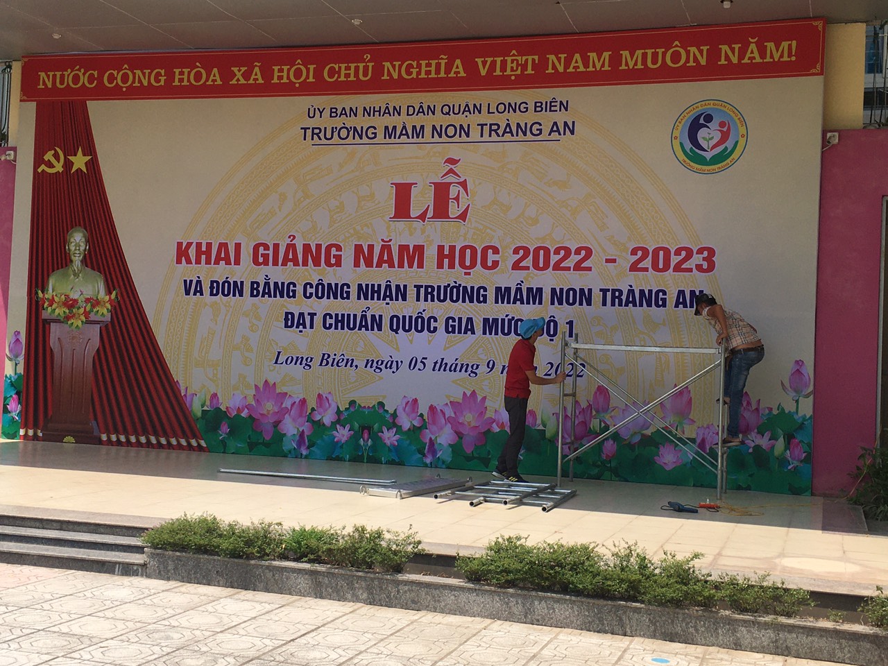 Ngày hôm nay 4/9/2022, sau những ngày nghỉ lễ quốc khánh 2/9. Nhà trưởng đã huy động, triệu tập 100% CBGVNV đến trường với những công việc khác nhau: Nhóm nhân viên nuôi dưỡng trồng hoa để sân khầu thêm khỏe sắc, lao động nhổ cỏ tại vườn hoa bốn mùa, kê bàn ghế đảm bảo chỗ ngồi cho các con học sinh, đại biểu, PHHS. việc khó, nặng như bắc dù bạt che nắng, che mưa, rồi xa xa trên sân khầu bao gồm các bạn học sinh và những cô giáo đang hăng say luyện tập các tiết mục văn nghệ chào mừng năm học mới. Cả sân trường Tràng An đều tấp nập, rộn ràng. vậy là công việc đã hoàn tất sẵn sàng chào đón năm học mới 2022- 2023.