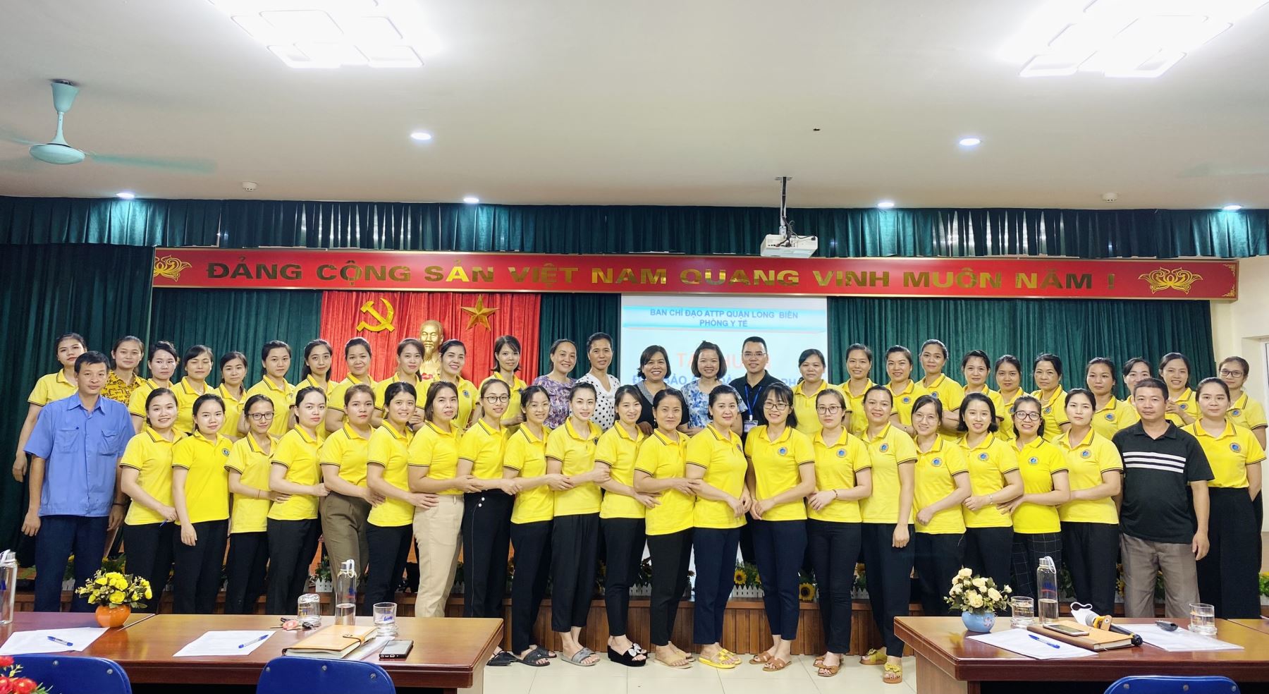 Về dự và giảng bài cho buổi tập huấn: Có Đ/c Lương Thị Minh Nguyệt Trưởng Phòng y tế Quận Long Biên, Đ/c Đào Đình Quyết nhân viên phòng VSATTP trung tâm y tế Quận Long Biên. Tại buổi tập huấn đồng chí Nguyệt phổ biến văn bản, các quy định về đảm bảo an toàn thực phẩm công tác, hướng dẫn các biện pháp phòng chống dịch bệnh và cho CBGVNV và học sinh tại nhà trường. đồng chí Quyết hướng dẫn triển khai thực hiện các biện pháp đảm bảo an toàn công tác vệ sinh an toàn thực phẩm tại bếp ăn tập thể trong trường học.