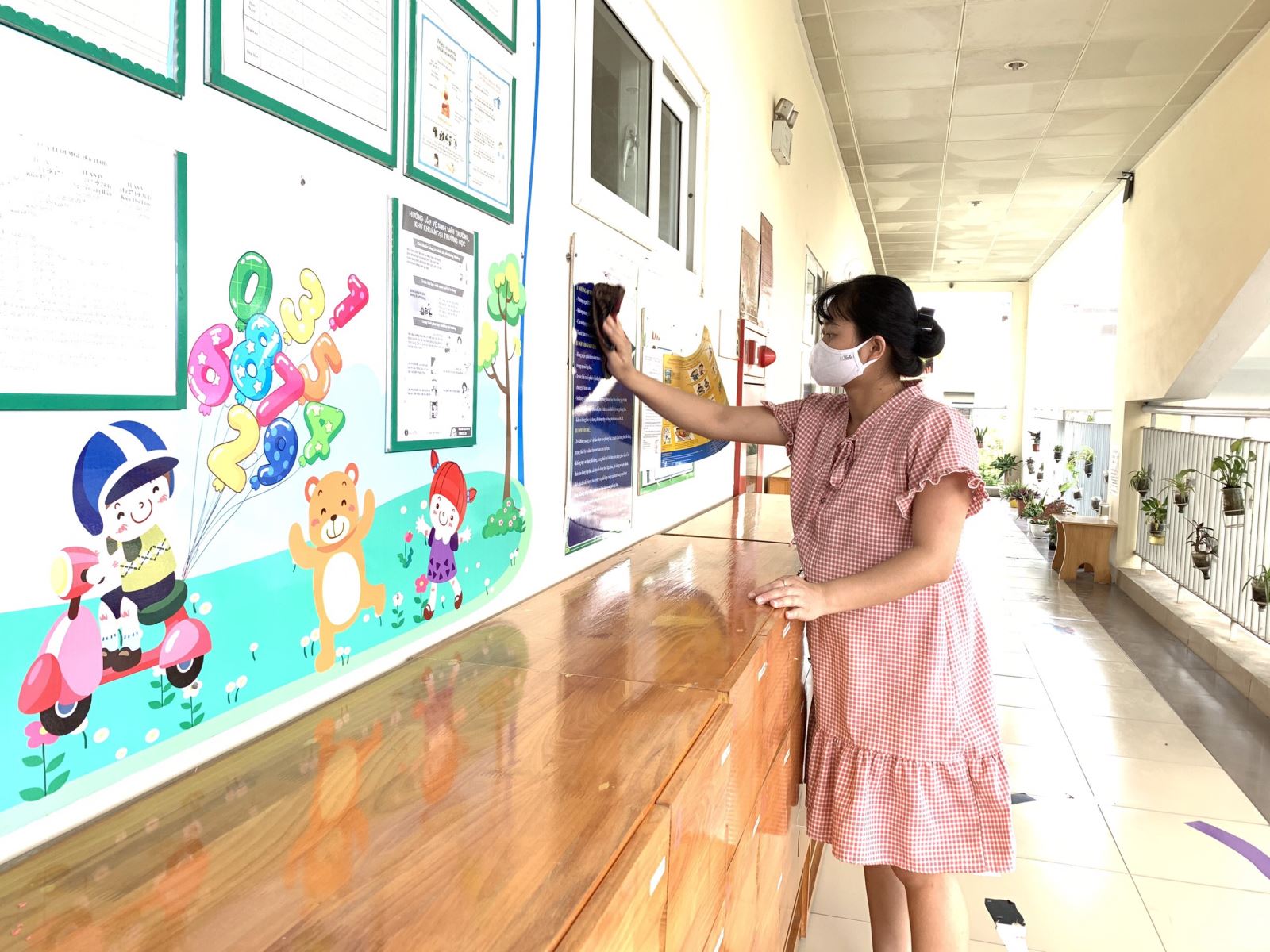 Tại các lớp, BGH nhà trường cũng đã chỉ đạo nhân viên y tế mua dung dịch sát khuẩn dự trữ để phục vụ công tác vệ sinh khử khuẩn khi trẻ đi học lại, phụ huynh của lớp cũng tặng cho các con dung dịch rửa tay khô đảm bảo việc thực hiện sát khuẩn cho học sinh và phụ huynh khi đón - trả trẻ tại cửa lớp, Hơn nữa Nhà trường luôn cố gắng đảm bảo phòng chống dịch viêm đường hô hấp cấp do chủng mới của virus Corona tốt nhất, để có một môi trường “Sáng - xanh - sạch - đẹp” đảm bảo an toàn chào đón trẻ quay lại trường học.