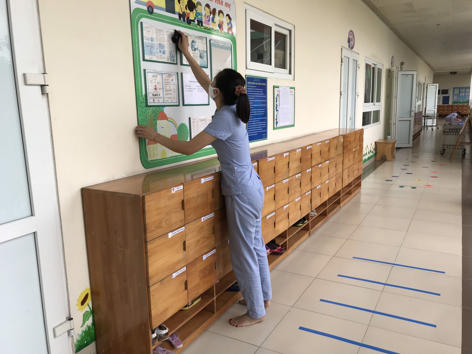 Để đảm bảo cho trẻ có một môi trường sạch sẽ, an toàn khi đến lớp trong đợt dịch Covid-19 đang bùng phát trở lại. Lớp Mẫu giáo nhỡ B3 đã thực hiện khử khuẩn đồ dùng đồ chơi trong ngoài lớp bằng dung dịch clomin B hằng ngày. Sau đây là một số hình ảnh:
