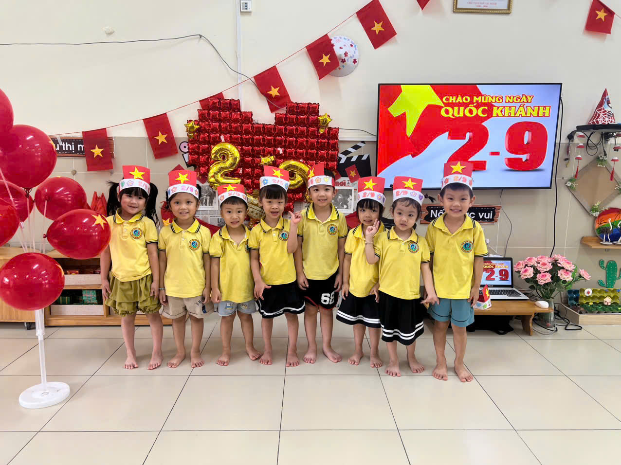 ♥️ Dưới bàn tay nhỏ xíu, từng mũ tuyệt đẹp được hoàn thành, hiện lên rực rỡ với sắc đỏ tươi và ngôi sao vàng nổi bật. 😍😍 Nhìn cả lớp đội mũ , ai cũng như đang khoác lên mình màu cờ Tổ quốc thật thiêng liêng và tự hào. 🇻🇳🇻🇳 Trong suốt hoạt động, các bé vừa chăm chú thực hiện, vừa hào hứng khoe thành quả với bạn bè, tạo nên một bầu không khí sôi động và ấm áp.💕💕