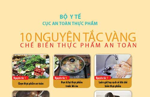 Nguyên tắc 10: Sử dụng nguồn nước sạch an toàn. Nước sạch là nước không màu, mùi, vị lạ và không chứa mầm bệnh. hãy đun sôi trước khi làm đá uống. Đặc biệt cẩm thận với nguồn nước dùng nấu thức ăn cho trẻ nhỏ.