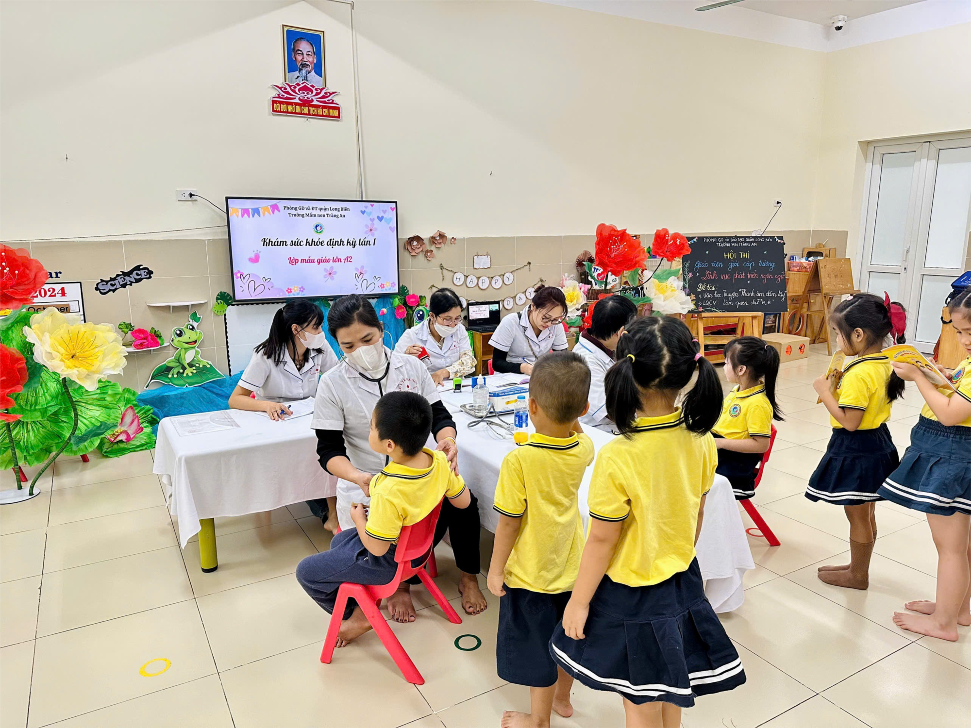 Khám sức khoẻ định kỳ cho các trẻ là hết sức thiết thực và ý nghĩa thông qua việc khám sức khỏe định kỳ cho trẻ đã góp phần không nhỏ vào việc nâng cao nhận thức cho phụ huynh về ý thức phòng chống một số bệnh thường gặp ở lứa tuổi mầm non và cũng qua hoạt động này đã đem lại sự phấn khởi, tin tưởng trong các bậc phụ huynh về một môi trường giáo dục an toàn và thân thiện.