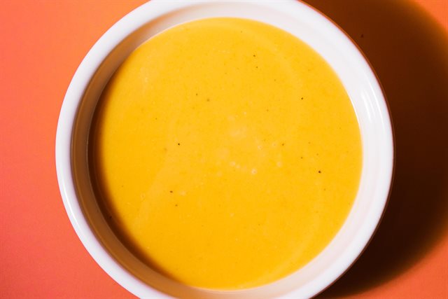 2.Sau khi bí !important; chín, dùng máy xay cầm tay xay nhuyễn. Nếu không có máy xay cầm tay, bạn trút hỗn hợp vào máy xay sinh tố rồi xay như bình thường nhé. Xay xong, bạn trút hỗn hợp ra tô, cho nước cốt dừa vào trộn đều.