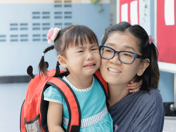 Chúng ta cần có sự kiên nhẫn trong thời gian dài để con có thể thích nghi với môi trường mới. Không nên la hét, đánh đập khi trẻ có biểu hiện quấy khóc, không chịu đến trường mà nên nhẹ nhàng nói chuyện, vỗ về con để con tin tưởng và cảm thấy an toàn khi đi học.