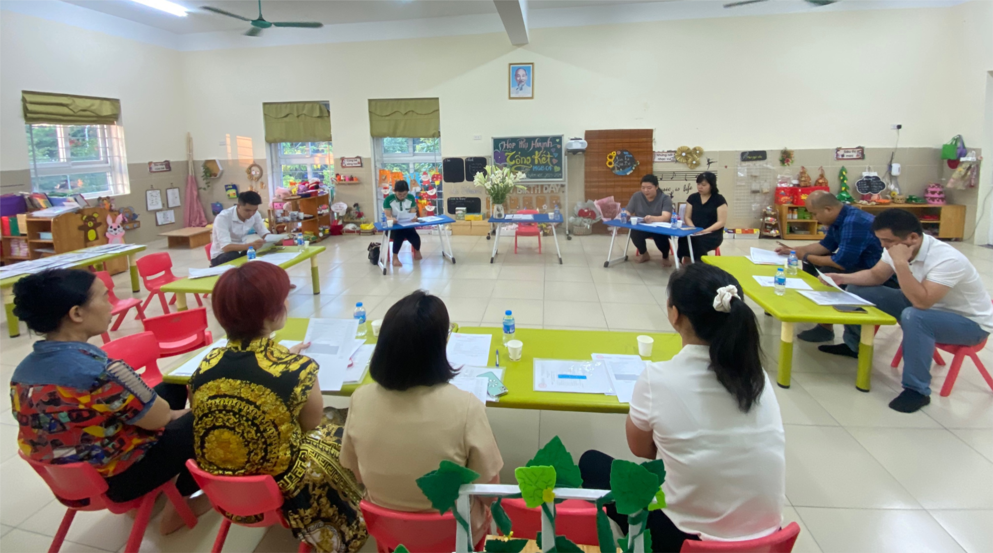 Một năm học nữa sắp trôi quá, một chuyến đò sắp cập bến. Nhằm gắn kết tình cảm và khẳng định những kết quả mà nhà trường MN Tràng An nói chung và lớp MGB C4 nói riêng đã đạt được là có sự đóng góp không nhỏ từ phía phụ huynh học sinh. Sự phối kết hợp tốt giữa Phụ huynh với giáo viên, giáo viên với phụ huynh đã làm nên những kết quả đáng trân trọng. Mặc dù rất bận công việc nhưng các bậc phụ huynh đã có mặt đúng giờ để dự buổi họp phụ huynh cuối năm. Dưới đây là một số hình ảnh của buổi họp phụ huynh lớp MGB C4: