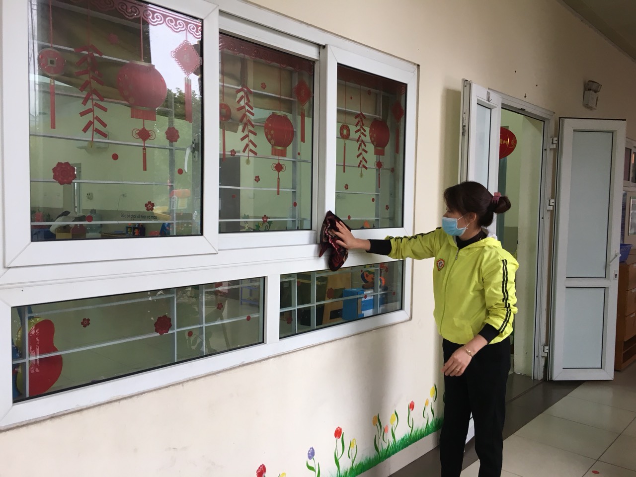 Ngày 07/02/2020, Giáo viên lớp nhà trẻ D1 đã thực hiện tổng vệ sinh, tẩy rửa sát trùng, khử khuẩn toàn bộ các khu vực trong và ngoài lớp học, đồ dùng đồ chơi, bàn ghế, tay nắm cửa, hành lang… bằng dung dịch sát khuẩn Cloramin B. Đây là việc làm rất thiết thực trước tình hình dịch bệnh đang diễn ra hiện nay. Giáo viên tại lớp cùng nhà trường luôn cố gắng đảm bảo phòng chống dịch viêm đường hô hấp cấp do chủng mới của virus Corona tốt nhất, để có một môi trường sạch sẽ đảm bảo an toàn chào đón trẻ quay lại