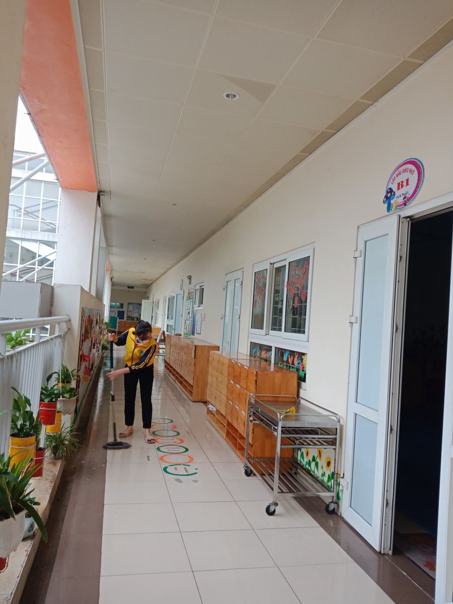 Để phòng chống bệnh viên đường hô hấp cấp do vi rút NCoV.Hôm nay ngày 14/2/20, các Cô lớp mẫu giáo nhỡ B1, đã thực hiện tổng vệ sinh toàn bộ các khu vực trong và ngoài lớp học, đồ dùng đồ chơi, bàn ghế, tay nắm cửa, hành lang… bằng dung dịch sát khuẩn Cloramin B để chuẩn bị đón trẻ quay trở lại lớp học.