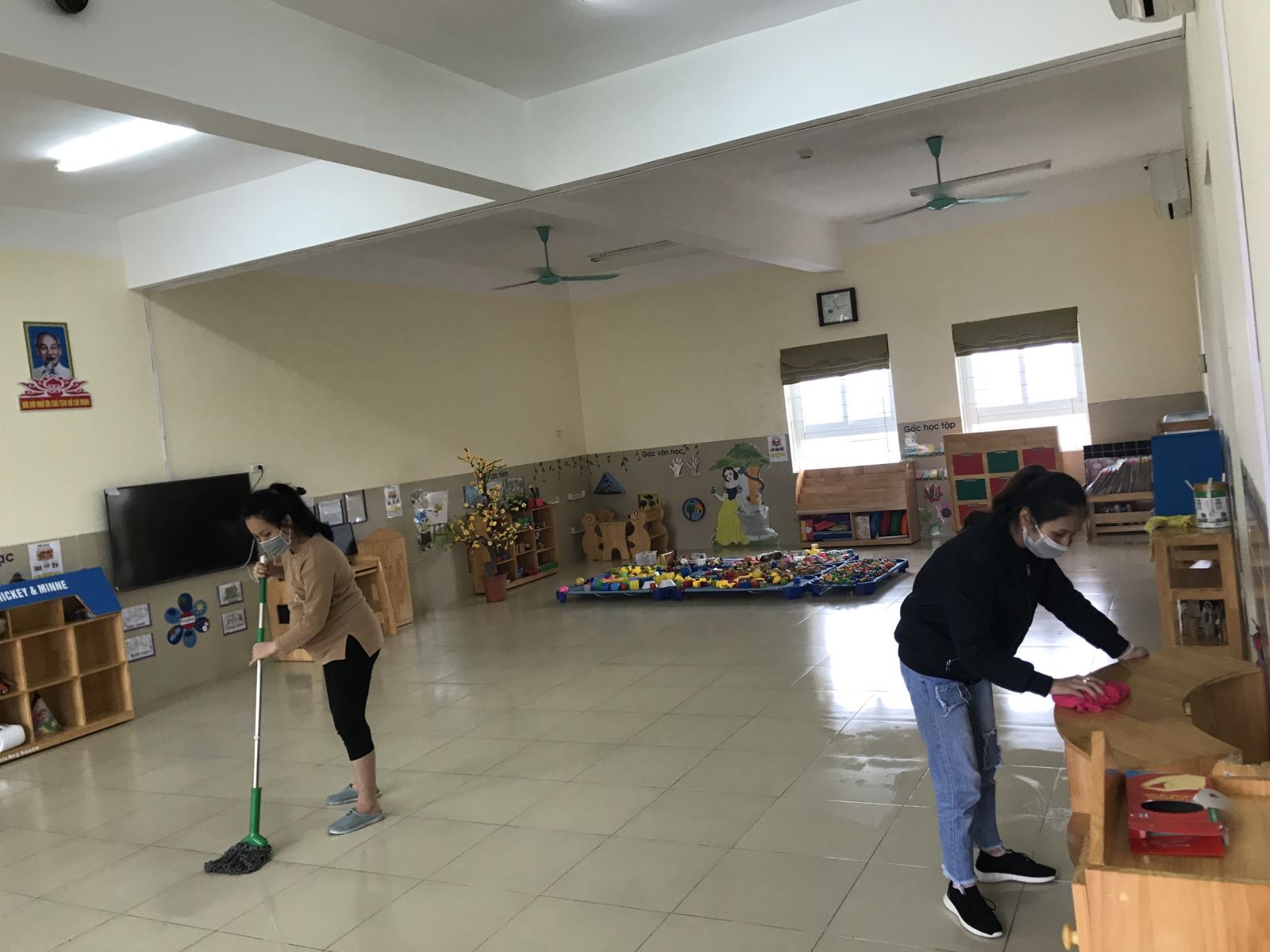 Đứng trước tình hình dịch bệnh NcoV đang diễn ra nhanh và phức tạp. Hôm nay ngày 7/02/2020 lớp MGL A3 trường MN Tràng An đã tiến hành tổng vệ sinh toàn bộ trong và ngoài lớp học, đặc biệt là đồ dùng, đồ chơi, bàn ghế, cửa sổ, giá đồ chơi, nhà vệ sinh... bằng dung dịch Cloramin B, thông thoáng phòng học sạch