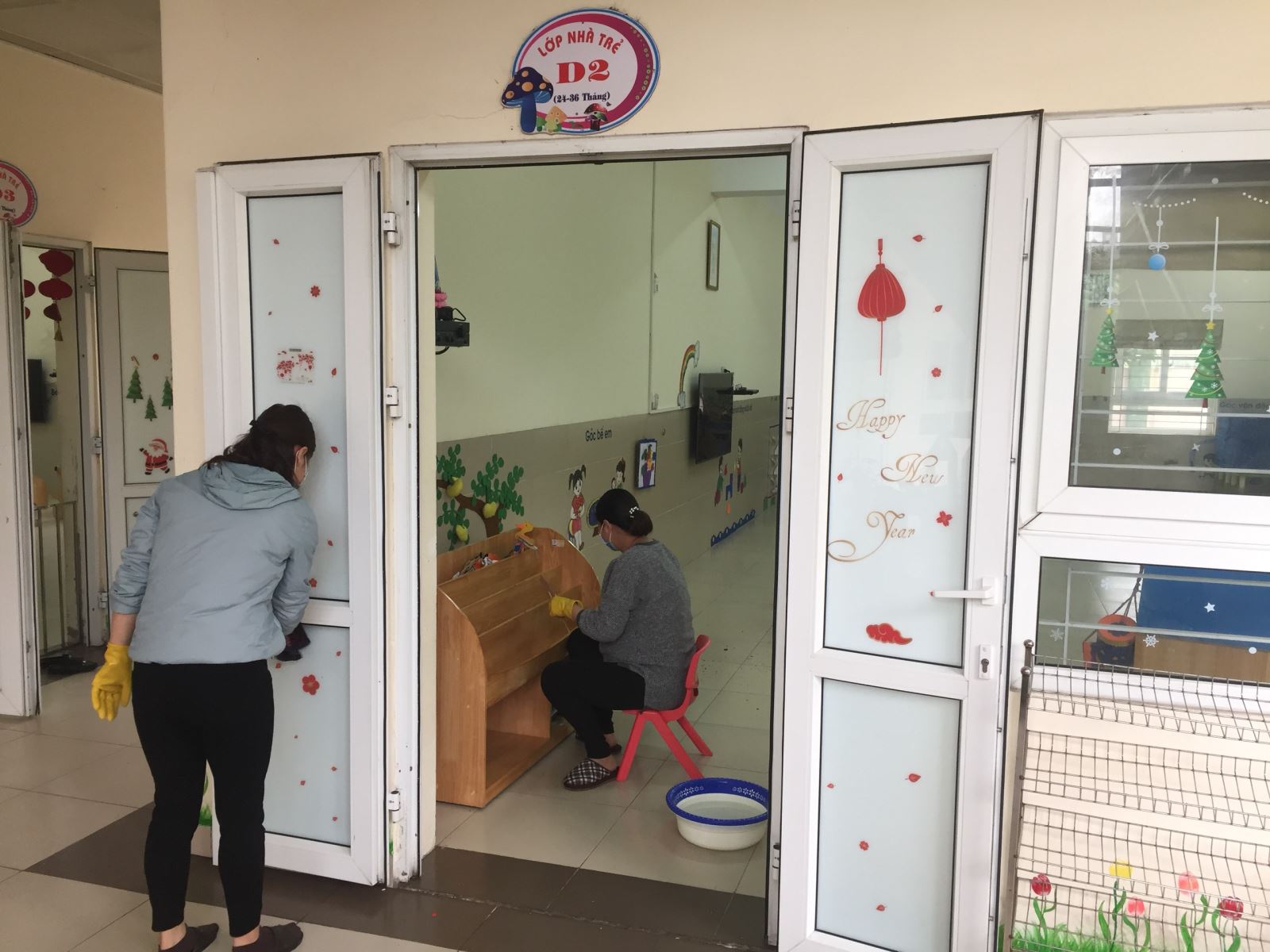 Để mới Các con được nghỉ học nhưng giáo viên lớp NT D2 trường MN Tràng An vẫn duy trì công tác vệ sinh trong và ngoài lớp học : lau, chùi đồ dùng đồ chơi cửa sổ cửa ra vào, lau bàn ghế, sàn lớp học bằng dd khử khuẩn Cloramin B nhằm giữ vệ sinh chung! Tạo một môi trường tốt cho các Con khi các Con đi học lại!