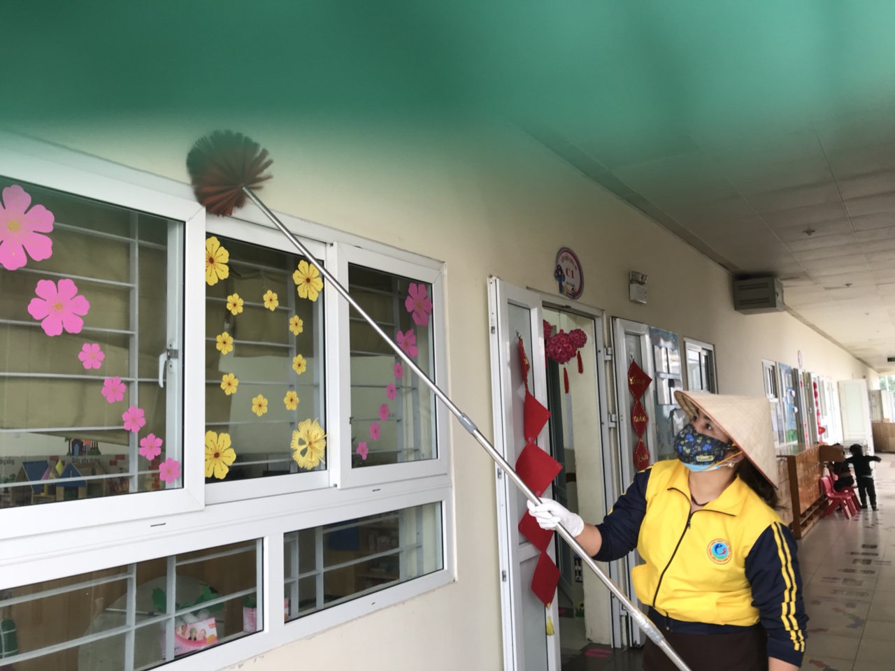 Sáng nay, đồng chí Hiệu trưởng Hồ Thị Tuyến đã tổ chức cuộc họp tuyện truyền, chỉ đạo, phân công rõ nhiệm vụ cho từng bộ phận nghiêm túc thực hiện. Sau cuộc họp Lớp MGB C1 tiếp tục tiến hành tổng vệ sinh trong và ngoài lớp học, các phòng chức năng như: Đồ dùng đồ chơi, giá đồ chơi, cửa, sàn nhà, tay vịn cầu thang bằng dung dịch sát khuẩn Cloramin B để phòng chống dịch tạo môi trường sạch sẽ, an toàn trước khi học sinh đi học trở lại.