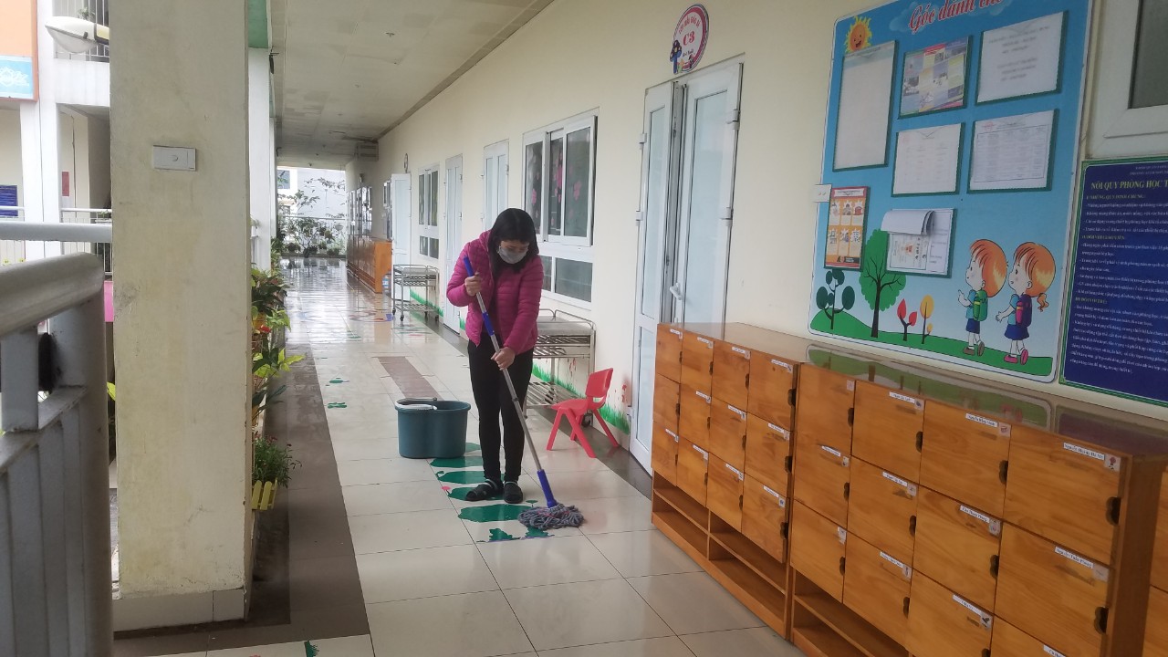 Để duy trì công tác tổng vệ sing phòng chống dịch bệnh viêm đường hô hấp cấp do chủng mới virus corona. Sáng thứ 6 ngày 14/2 giáo viên lớp MGBC3 trường mn Tràng An đã thực hiện vệ sinh lần 3 .Các cô tích cực lau dọn vệ sinh trong và ngoài lớp,hành lang trước và sau,cửa kính lớp bằng dung dịch sát khuẩn cloramin B để chuẩn bị đón các con đến lớp thật an toàn,sạch sẽ.