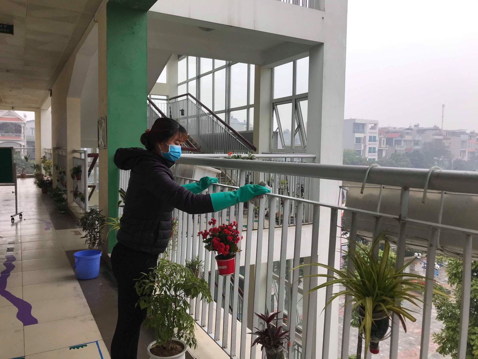 Để duy trì công tác tổng vệ sinh phòng chống dịch bệnh viêm đường hô hấp cấp Covid-19. Sáng thứ 6 ngày 21/2 giáo viên lớp MGL A3 trường mn Tràng An đã thực hiện vệ sinh lần 4 .Các cô tích cực lau dọn vệ sinh trong và ngoài lớp,hành lang trước và sau,cửa kính lớp, tủ các nhân,.... bằng dung dịch sát khuẩn cloramin B để chuẩn bị đón các con đến lớp thật an toàn,sạch sẽ.
