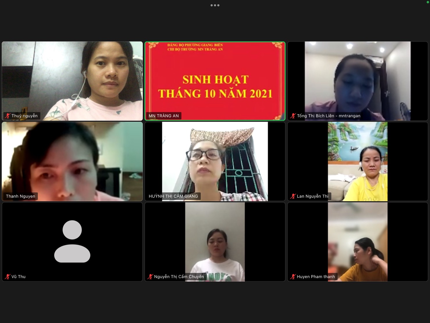 Trước tình hình dịch bệnh Covid-19 đang diễn biến phức tạp ngày 04/10/2021 chi bộ trường Mn Tràng An đã tổ chức buổi sinh hoạt bằng hình thức trực tuyến, dự buổi sinh hoạt có 18 đồng chí Đảng viên trong chi bộ.