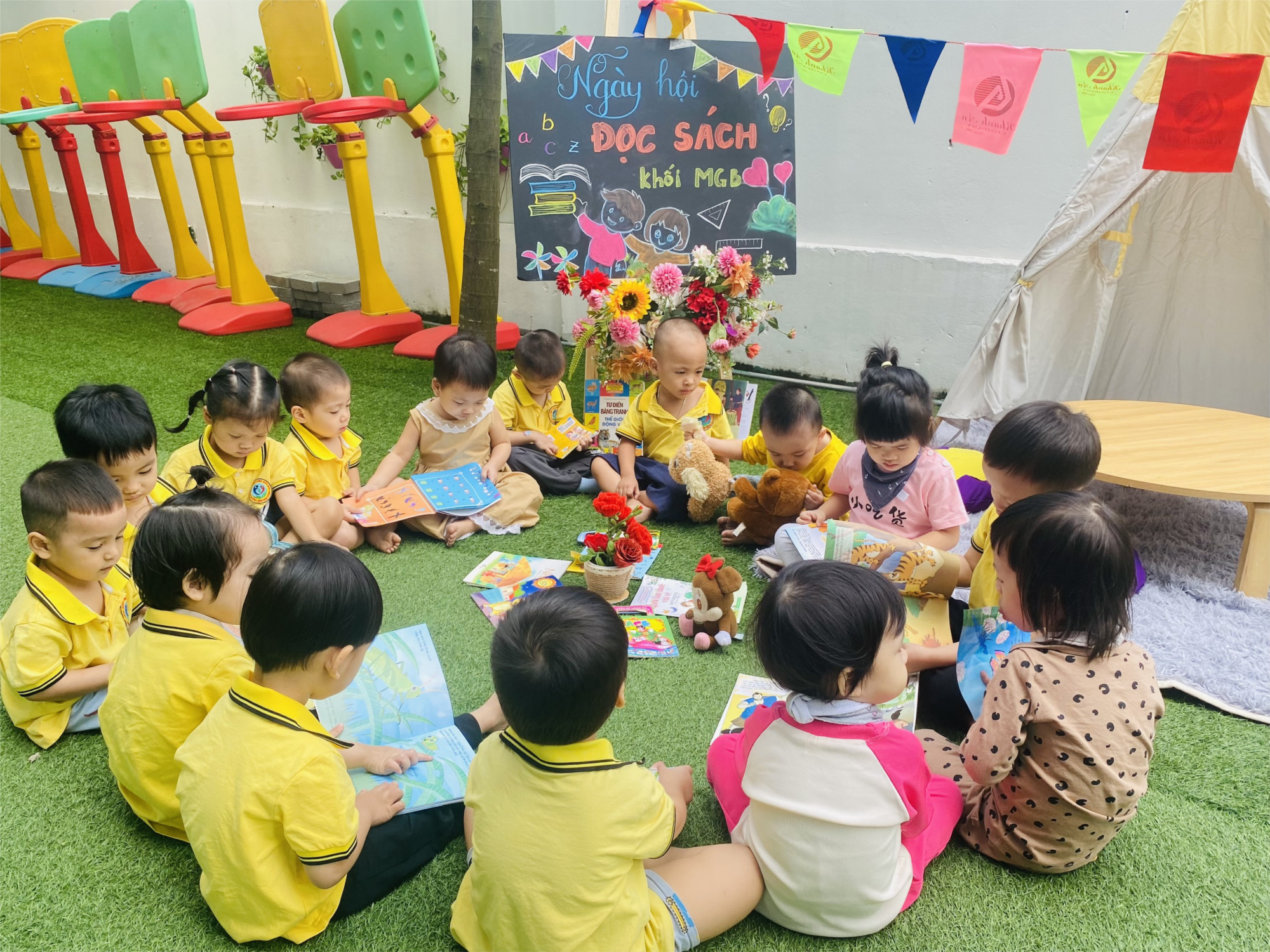 Ngày hội đọc sách của bé là một ngày hội lớn nhằm tôn vinh những giá trị to lớn của sách. Hưởng ứng ngày hội đọc sách, hôm nay, ngày 02/10/2024, các bé lớp mẫu giáo bé C3 được tham gia hoạt động đọc sách trong "Ngày hội đọc sách của bé" tại Trường mầm non Tràng An. Việc đọc sách nhằm khơi gợi lòng say mê đọc sách cho trẻ ngay từ những năm ở lứa tuổi mầm non. Các bé được các cô giáo và bố mẹ hướng dẫn cho các con tìm những cuốn sách mà mình thích. Cô và trò đều tươi vui háo hức. Sau đây là một số hình ảnh: