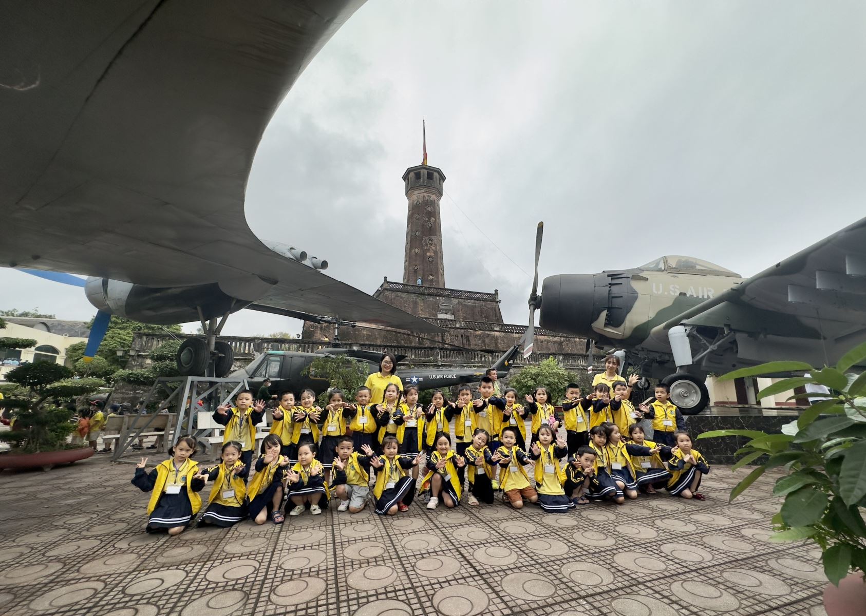 Hôm nay cô và trò lớp MGL A1 cùng nhau tham quan bảo tàng Quân đội, nơi đây các con được trải nghiệm, được giáo dục bồi đắp tình yêu quê hương, đất nước, niềm tự hào về truyền thống hào hùng của cha anh. Đây là một hình thức rất trực quan, sinh động mà các con rất là thích. Dù có thể bây giờ các con chưa hoàn toàn hiểu hết các câu chuyện, nhưng sẽ cảm nhận được thế nào là dũng cảm, thế nào là yêu tổ quốc, từ đó nuôi dưỡng những phẩm chất tốt đẹp trong các con.