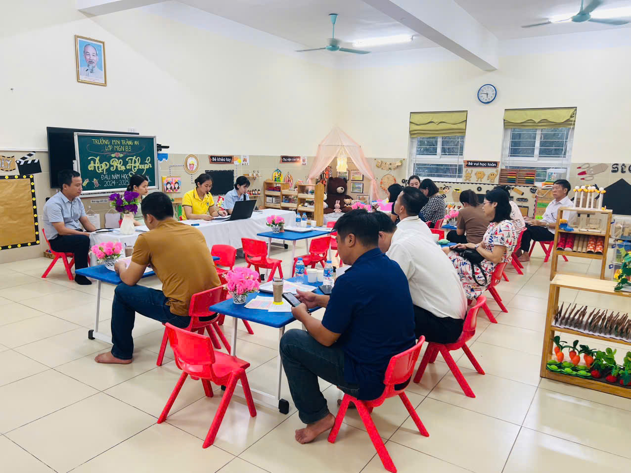 ⭐️ Chiều ngày 26/9/2024, theo chỉ đạo của BGH nhà trường nhằm triển khai các nội dung các nhiệm vụ trọng tâm trong năm học 2024-2025. Giáo viên lớp MGN B3 đã tổ chức thành công cuộc họp phụ huynh học sinh đầu năm học 2024- 2025. Cuộc họp đã diễn ra trong không khí ấm cúng và thân thiện. Cô giáo cùng phụ huynh đã chia sẻ, trao đổi những thông tin quan trọng và mục tiêu cho năm học mới.