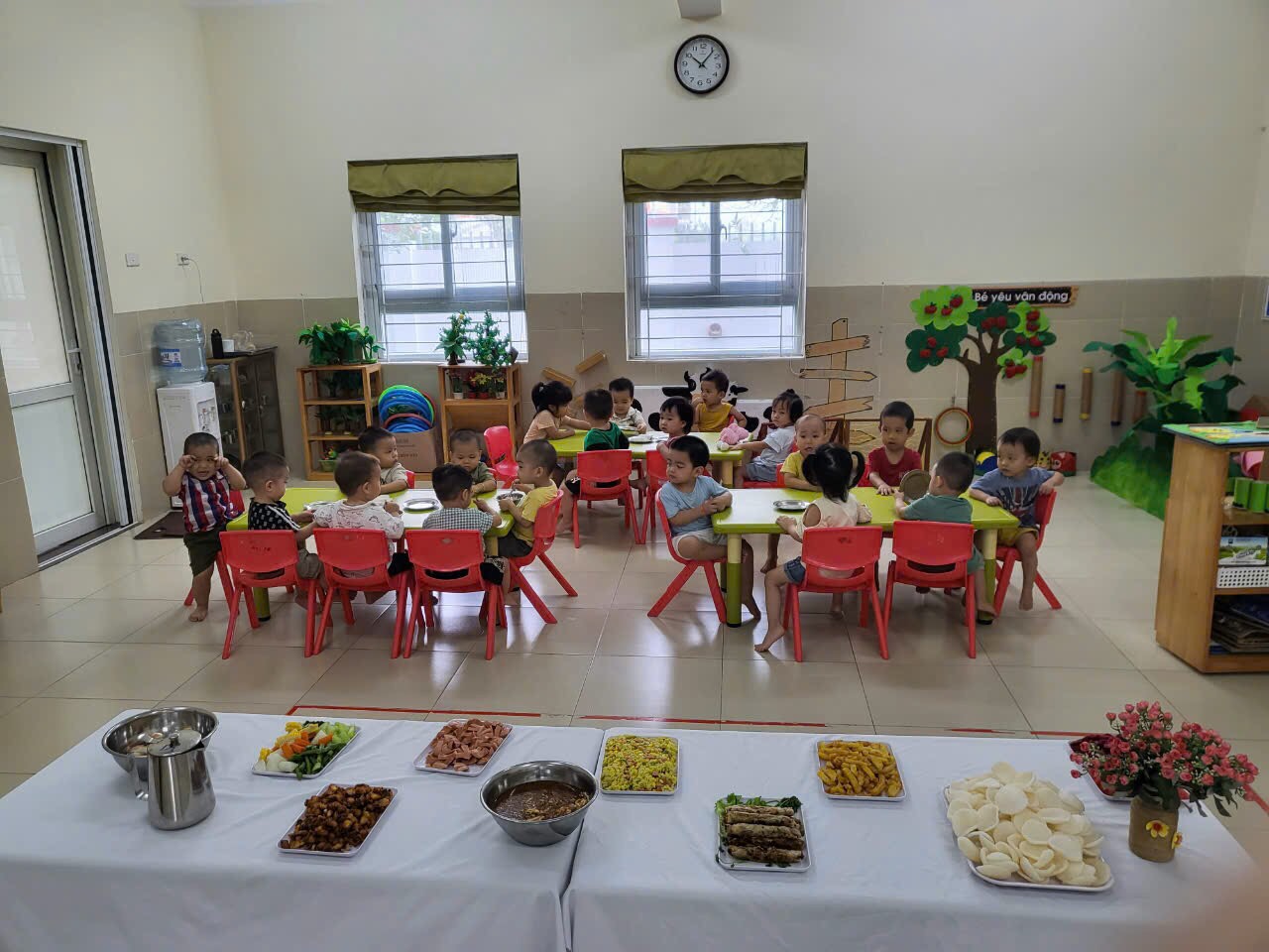 Trong không khí vui tươi nô nức với các hoạt động của các bé đang được tham gia tại trường Chúc mừng ngày phụ nữ Việt Nam 20/10. Một không gian ngập tràn niềm vui, thích thú của các bạn nhỏ được hòa mình vào bữa tiệc Buffet, đươc giao lưu và được thưởng thức những món ăn ngon hấp dẫn.