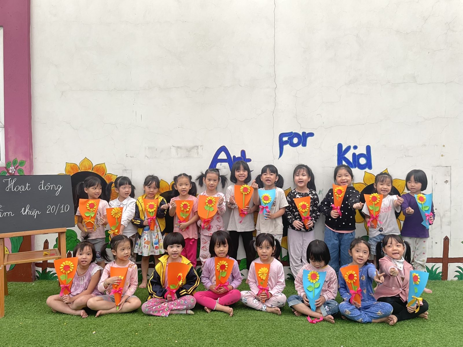 Ngày 20 tháng 10 năm 1930 chính là ngày thành lập Hội Phụ nữ phản đế Việt Nam – nay đổi thành Hội Phụ nữ Việt Nam, đã đi vào lịch sử dân tộc Việt không chỉ là ngày Phụ Nữ Việt Nam đơn thuần như mọi người thường biết đến mà ngày này còn ghi dấu với hình ảnh những người phụ nữ anh hùng. Từ trong lịch sử dân tộc Việt đã có bao vị nữ anh hùng như Bà Trưng, Bà Triệu, Bùi Thị Xuân, Nguyễn Thị Định…là những tấm gương về đức hy sinh cho sự nghiệp đấu tranh bảo vệ và xây dựng đất nước. Ngày hôm nay các con đã tự tay làm những bó hoa tươi thắm để gửi tặng đến bà, mẹ, chị và các bạn nữ. Nhân ngày lễ ý nghĩa này các bé lớp MGL A5 xin gửi tới các bà, các mẹ, các chị những lời chúc thân thương nhất. Các bé xin chúc các bà, các mẹ, các chị và các bạn nữ luôn vui vẻ mạnh khoẻ, xinh đẹp.