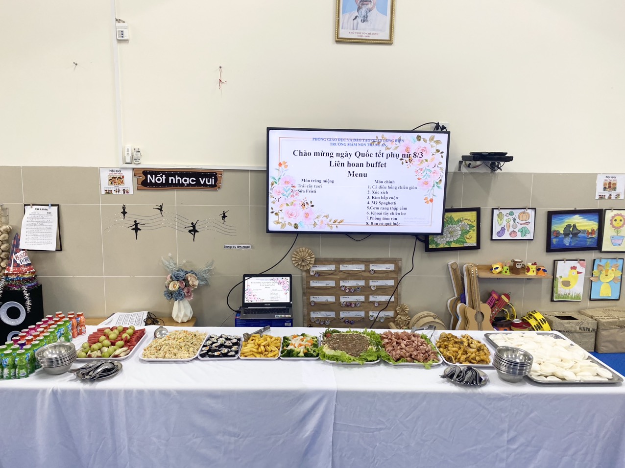 Ngày 06/3/2024, các bạn lớp MGNB3 vô cùng phấn khởi, hào hứng đi học để tham gia bữa tiệc buffet tạ cùng bạn bè thân thương của mình. Tại bữa tiệc Buffet trẻ được tự do chọn món ăn mình yêu thích ăn và tham gia vào bữa tiệc ẩm thực một cách hào hứng. Điều này không chỉ có ý nghĩa về mặt dinh dưỡng: giúp trẻ ăn ngon miệng hơn, hấp thu tốt hơn mà còn có ý nghĩa tích cực rất lớn trong việc giáo dục và hình thành các kỹ năng, lịch sự trong văn hóa ẩm thực và sự hiểu biết của trẻ về thực phẩm và các món ăn mà trẻ yêu thích. Sau khi lựa chọn món ăn yêu thích, các bé trở về chỗ ngồi của mình và thưởng thức những món ăn ngon miệng. Bữa ăn của trẻ trở nên hấp dẫn, sinh động hơn; tập cho trẻ phong cách ăn uống văn minh, lịch sự, hiện đại, những trải nghiệm hoàn toàn mới mẻ, những hoạt động hết sức độc đáo mỗi ngày tới trường. Vui vẻ, hấp dẫn và ngon miệng, tiệc Buffet đã trở thành một ấn tượng hết sức khó phai trong lòng các bé; để mỗi ngày tới trường của các bé sẽ trở thành một ngày thật vui.