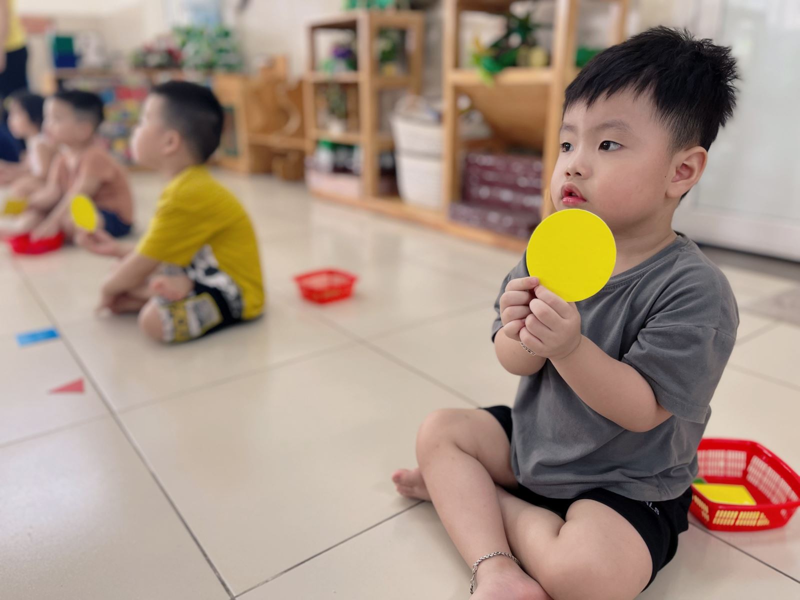 Hôm nay các bé lớp MGB C1 có tiết học làm quen với Toán với đề tài "Nhận biết gọi tên hình tròn, hình vuông" . Các bé đã được học, được quan sát, được sờ cảm nhận đường bao xung quanh, được thử lăn hình để nhận ra hình tròn lăn được còn hình vuông không lăn được. Tự nêu được đặc điểm lăn được của hình tròn không giống như hình vuông khiến các bé cảm thấy rất vui và hứng khởi. Nhìn những ánh mắt chăm chú, gương mặt vui vẻ của các con trông thật đáng yêu !