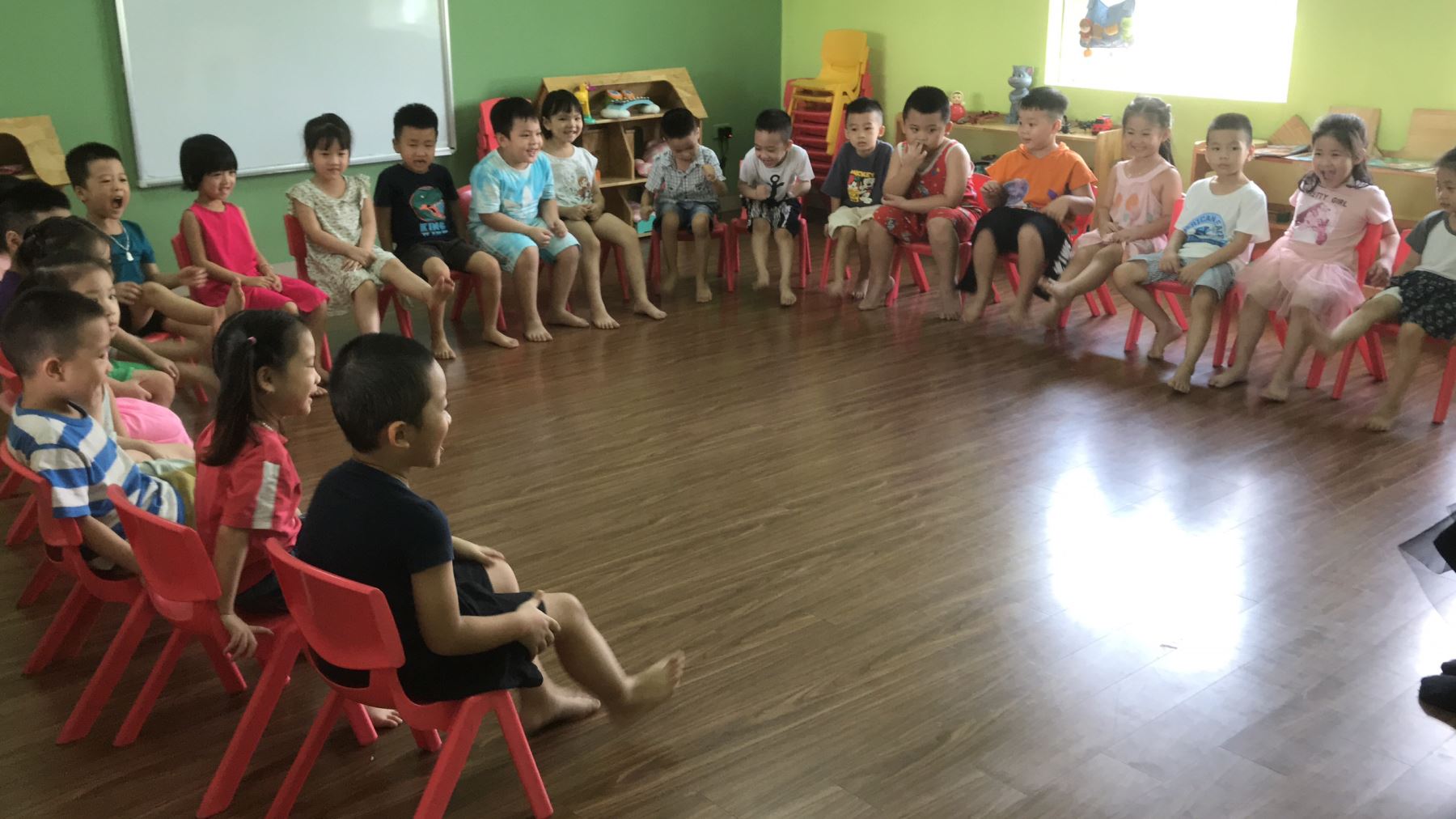 Tiếng Anh là tiền đề không thể thiếu trong sự phát triển toàn diện của bé. Tiếng Anh không chỉ giúp bé dễ dàng hòa nhập mà còn tăng cường tính chủ động, linh hoạt, tự tin trong giao tiếp, nghe nói chuẩn, phát triển khả năng ngôn ngữ và tư duy não bộ tốt hơn. Việc cho trẻ học ngoại ngữ sớm được khoa học chứng minh mang lại nhiều lợi ích về kỹ năng lẫn tư duy của trẻ. Ngoài giờ học trên lớp, các bé A1 còn tham gia học rất nhiều môn năng khiếu trong đó phải kể đến tiếng Anh E3. Với mỗi giờ học, các bé lại cảm thấy hào hứng với sự giảng dạy lôi cuốn của thầy cô bên trung tâm E3. Tiết học nhẹ nhàng, vừa học vừa chơi, từ vựng được cung cấp cho trẻ qua nhiều hình thức. Ngày hôm nay các bé đã rất thích thú khi được nghe cô giáo lồng ghép từ vựng qua 1 câu chuyện nhỏ cùng bạn gấu Teddy, được cùng nhau chơi trò chơi cần có sự phối hợp. Cả tiết học lúc nào cũng tràn đầy năng lượng. Ba mẹ hãy cùng xem các bé tự tin, mạnh dạn như nào trong giờ học với cô giáo nhé!